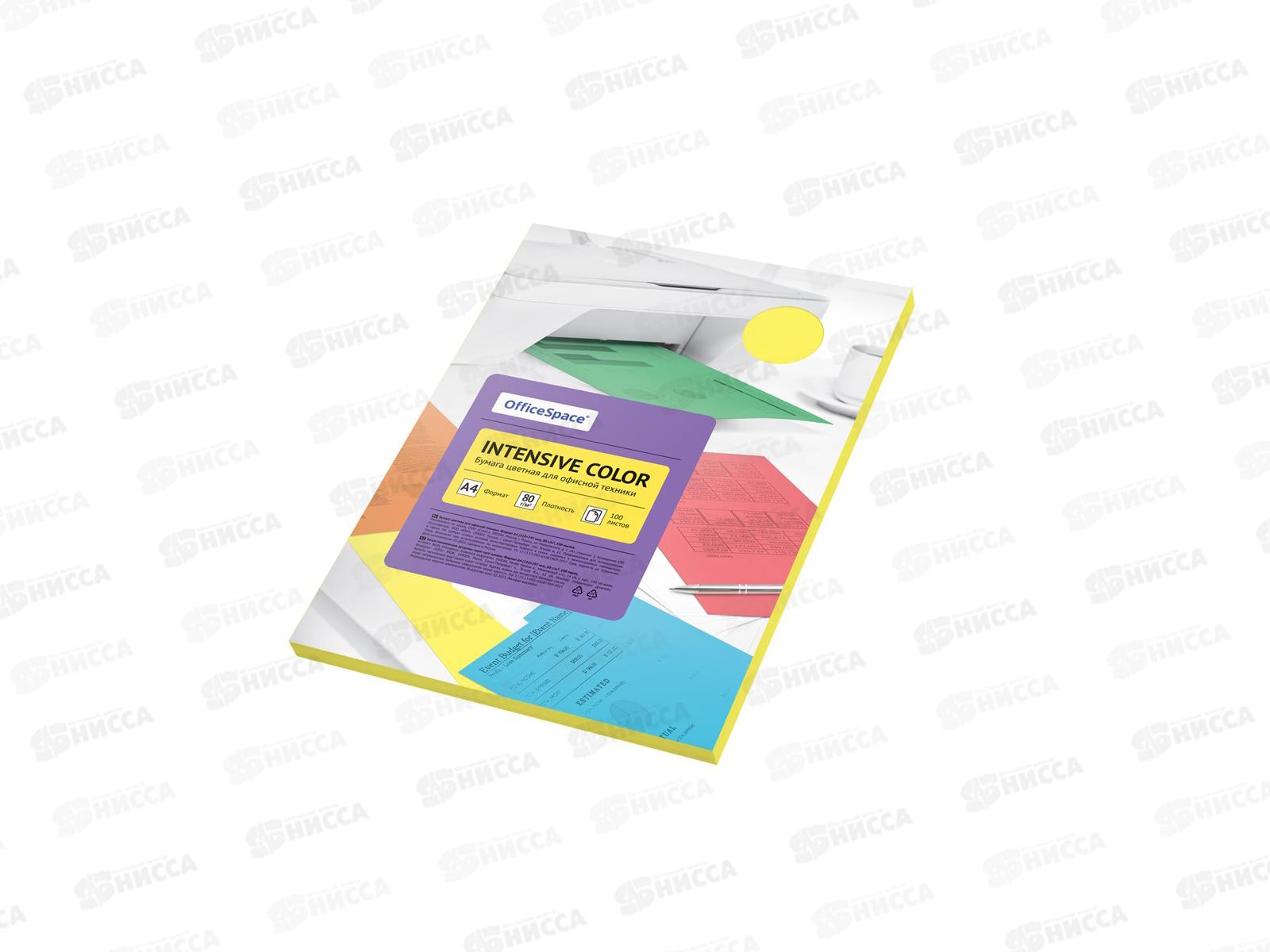 Бумага ксероксная P80 100л А4 OfficeSpace intensive желтый, 38227 *20