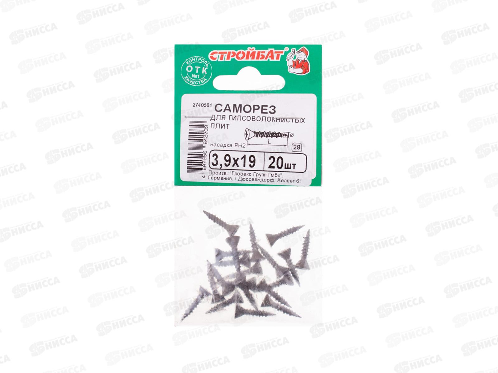 Саморез для ГВЛ гипсоволокнистых плит 3,9x19 (фосфатированые 20шт) *50
