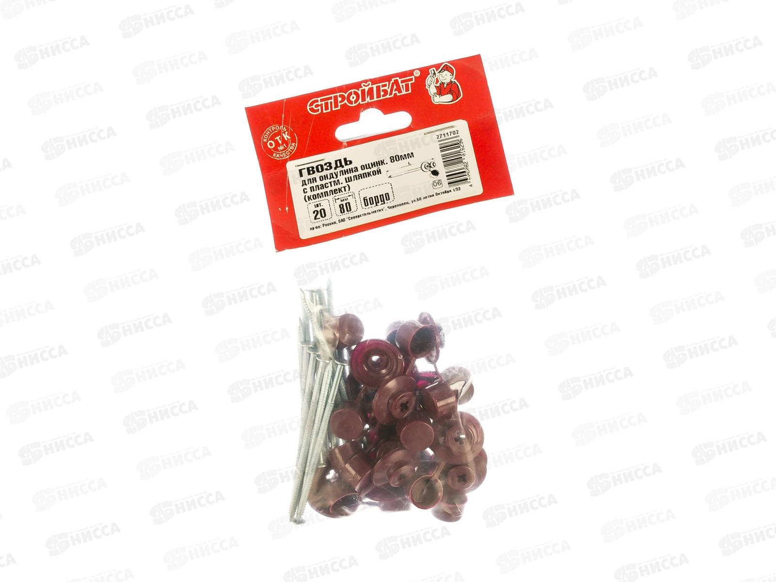 Гвозди для ондулина оцинковка 80 мм с пластмассовыми шляпками (бордо 20шт) *20