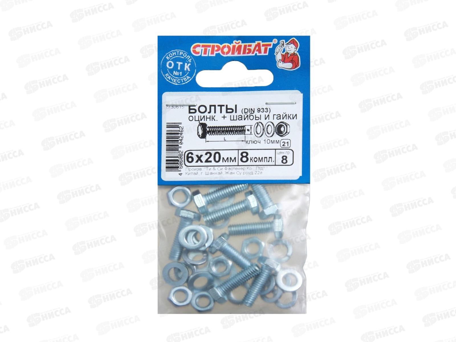 Болты DIN 933 М 6x20 с гайками и шайбами (белый цинк 8шт) *40