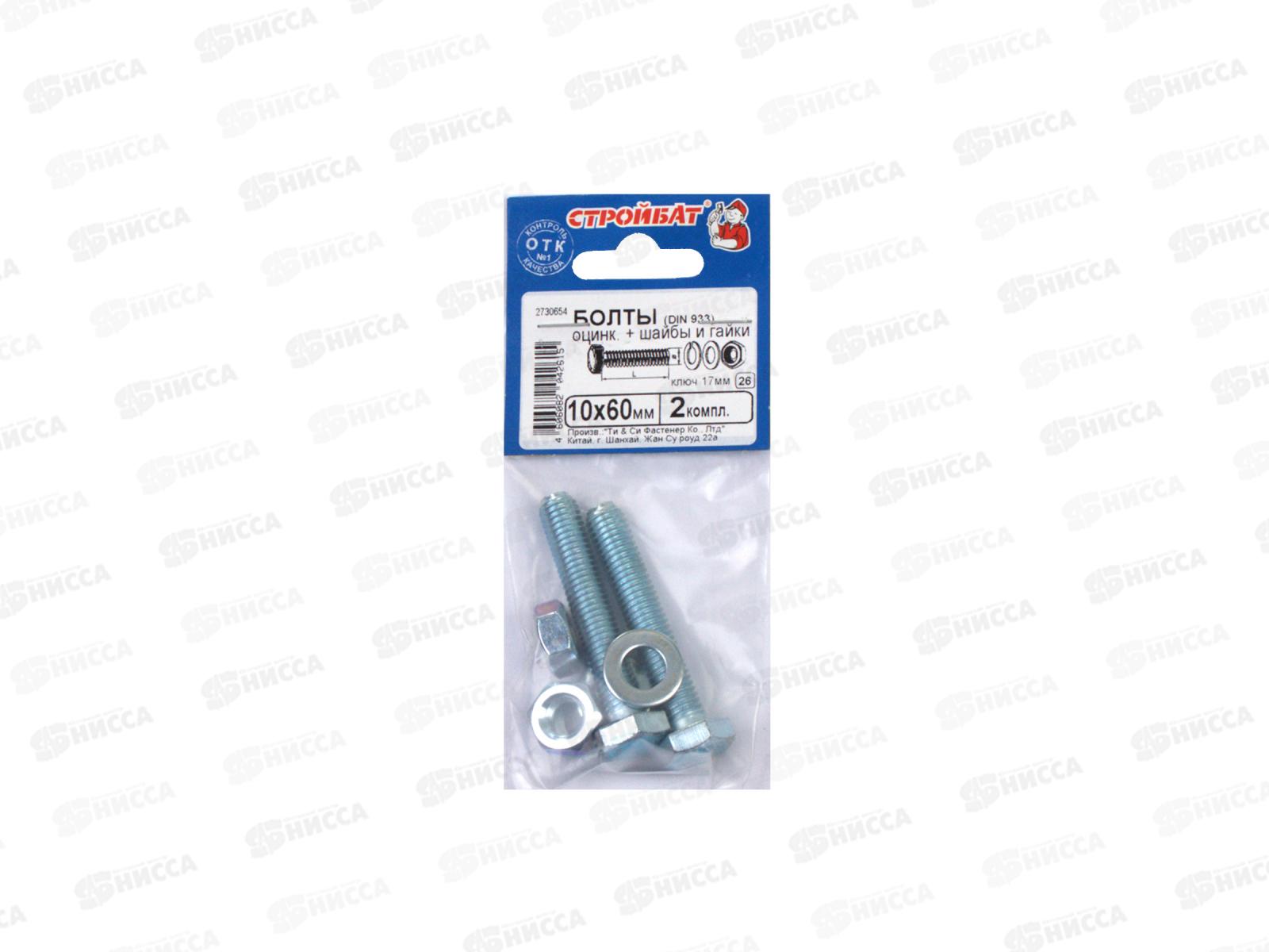 Болты DIN 933 М10x60 с гайками и шайбами (белый цинк 2шт) *40