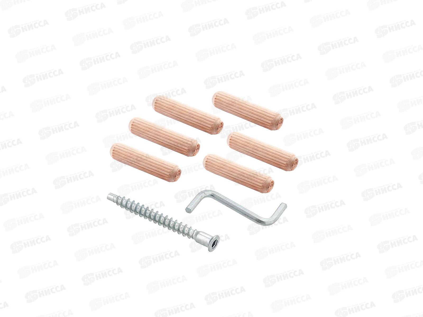 Состав набора: стяжки шурупные оцинкованные 7,0х50 HEX (40 шт.), шканты мебельные 8х30 мм (40 шт.), ключ для мебельной стяжки HEX 4.