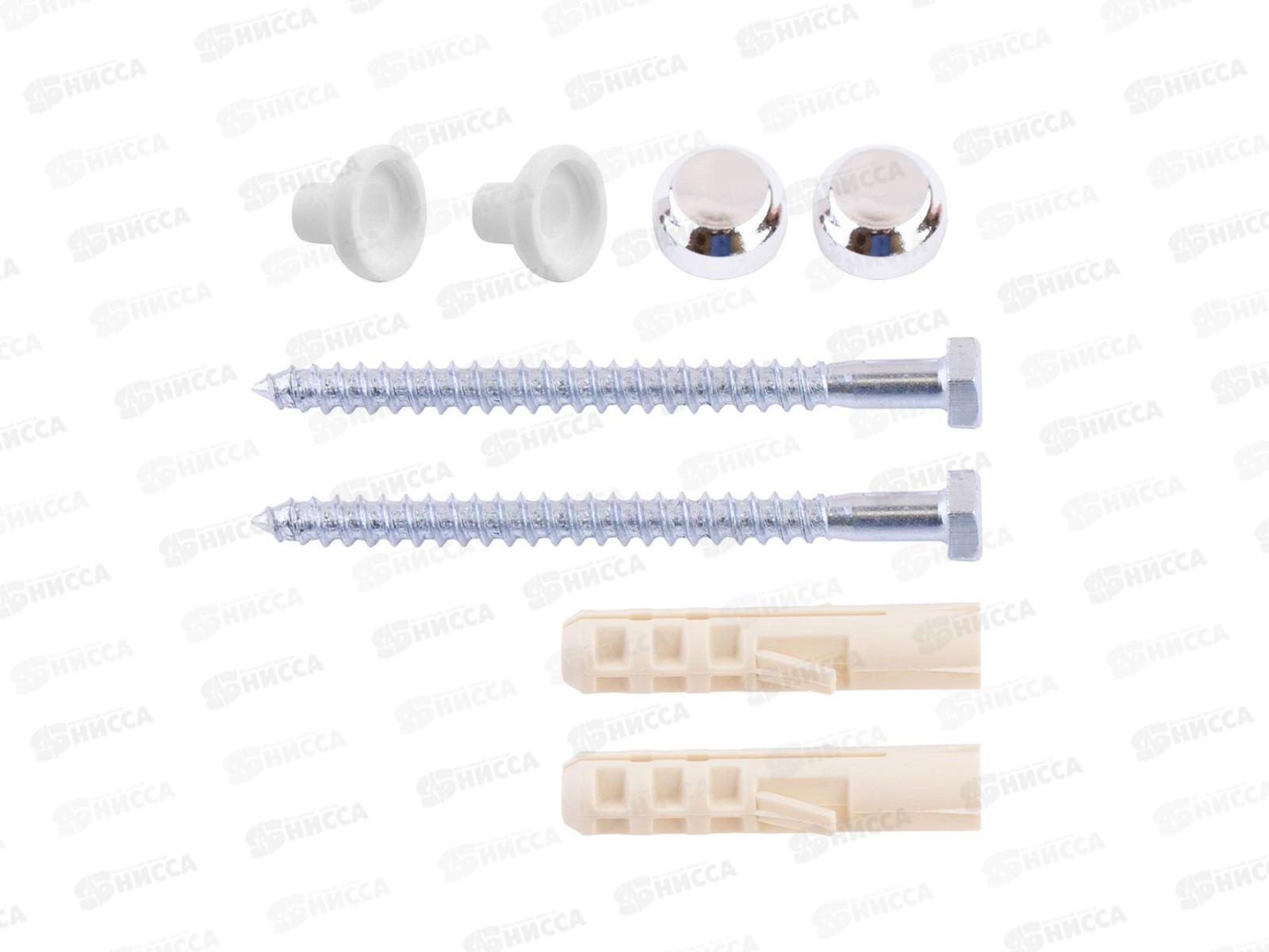 В комплект входит: болт сантехнический оцинкованный 6х80 (2 шт.), дюбель распорный 10х60 (2 шт.), заглушка пластиковая (2 шт.), вставка пластиковая (2 шт.).