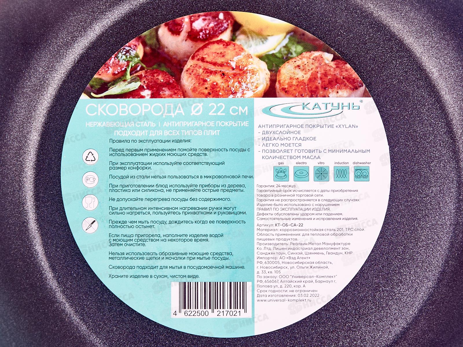 Сковорода 22см без крышки (общепит) корпус 06,мм индукционное дно КТ-ОБ-СA-22