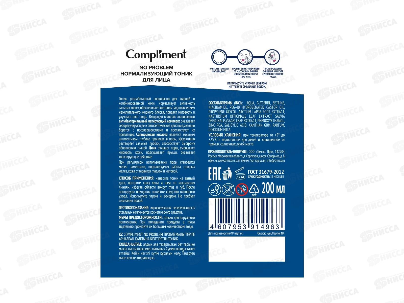 КОМПЛИМЕНТ No Problem Нормализующий тоник для лица 200мл *12