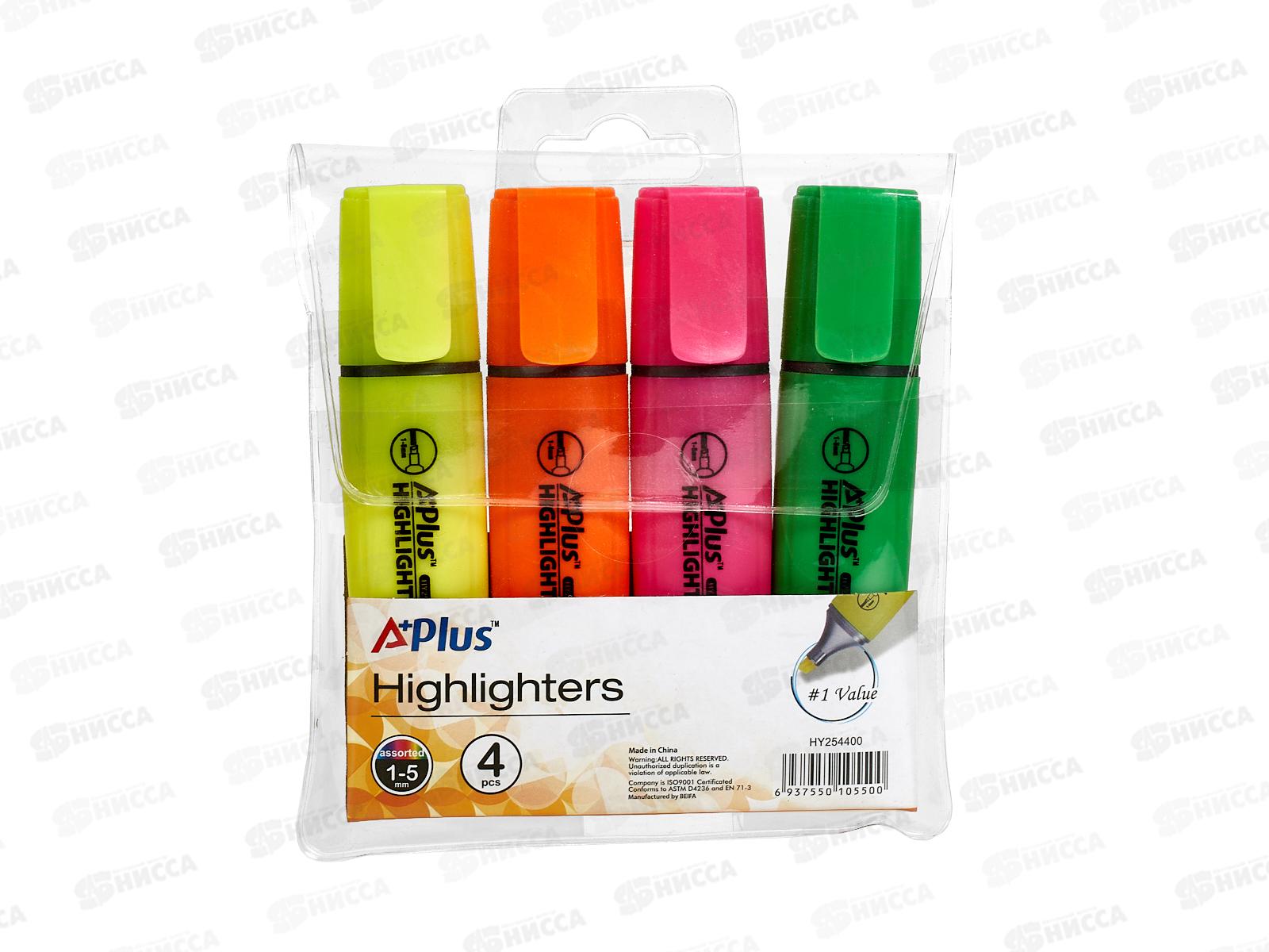 Маркеры BEIFA текстовый флюоресцентный 4 цвета (желтый, оранжевый, розовый, салатовый) 254400-4 *12/144