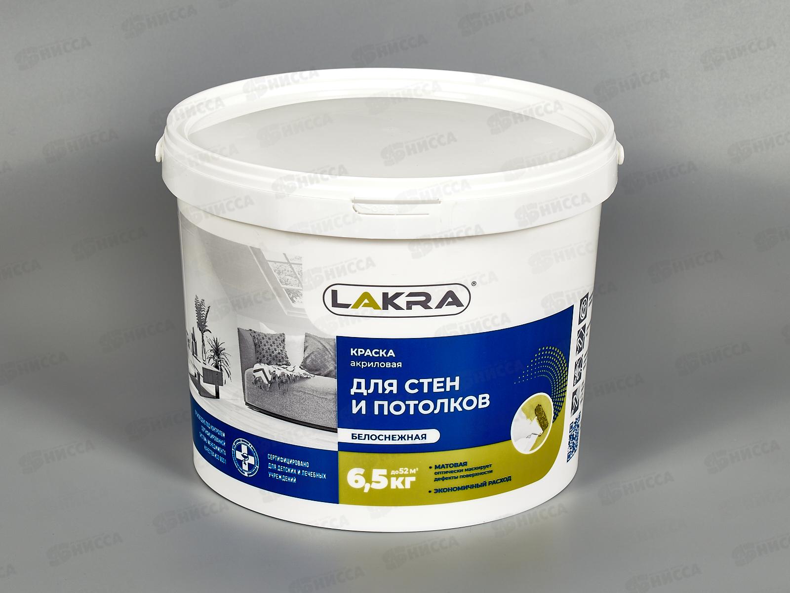 Краска акриловая для стен и потолков Лакра белоснежная 6,5кг, 8306470 *72