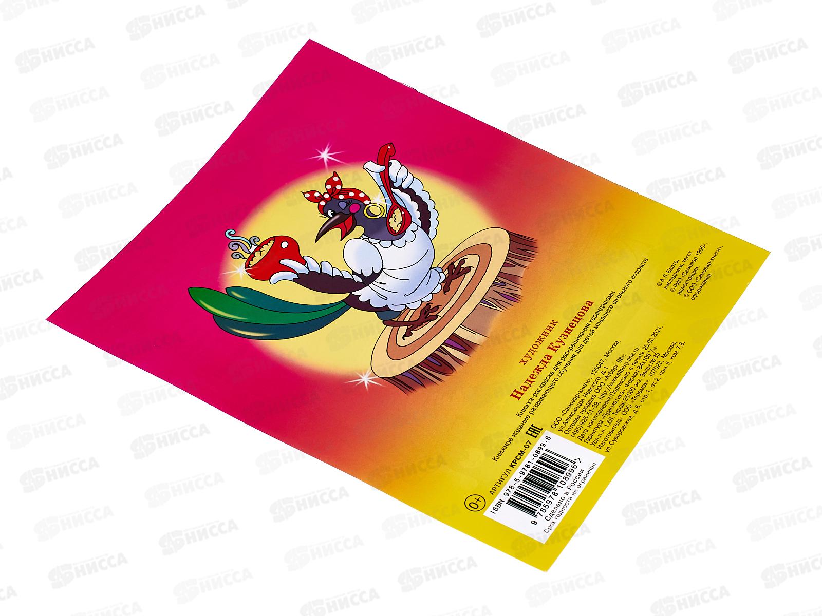 В книжке представлены крупные иллюстрации с цветными образцами для раскрашивания. Каждую картинку сопровождают добрые и легко запоминающиеся стихотворения Агнии Барто. Издание включает 16 страниц, из которых 8 цветные, а 8 - чёрно-белые.