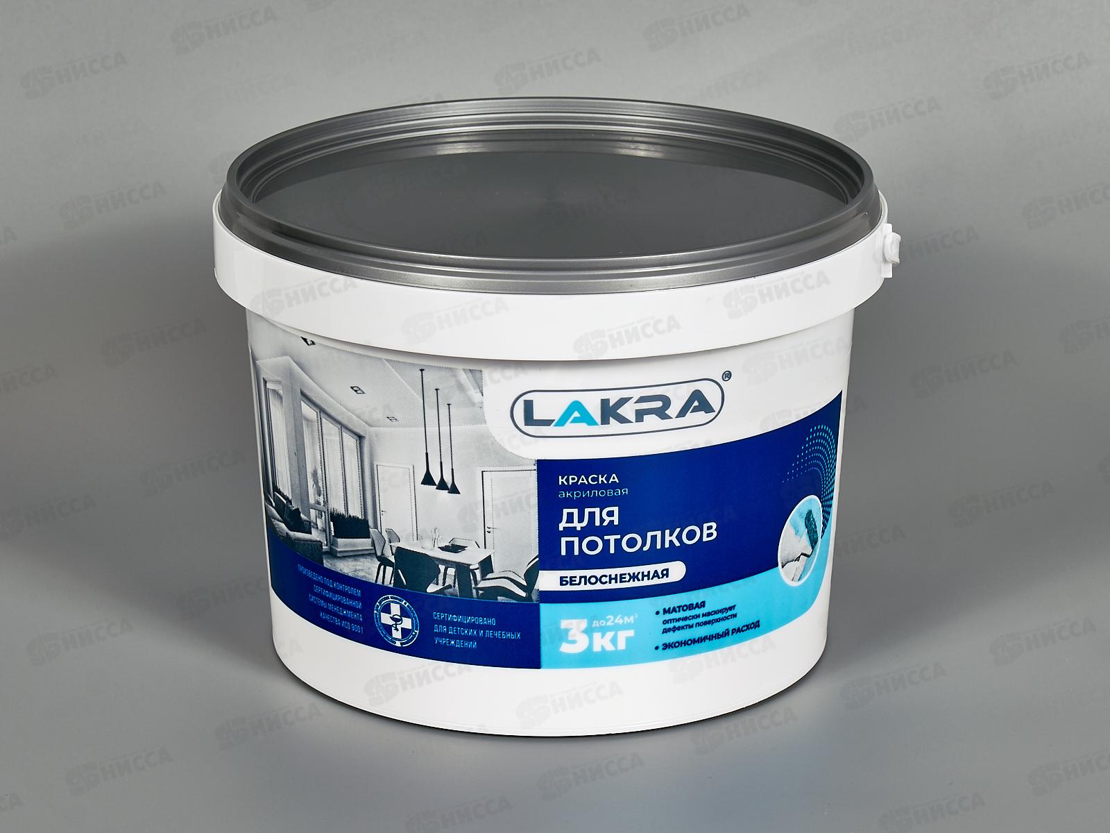 Краска водно-дисперсионная для потолков 3кг белоснежная, акриловая, Лакра, 8306461 *144