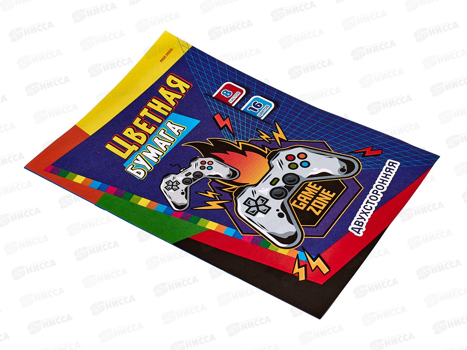 Цветная бумага 8л 8цв ПП А4 Игровая зона-1, двухстор., 08-4429 *50