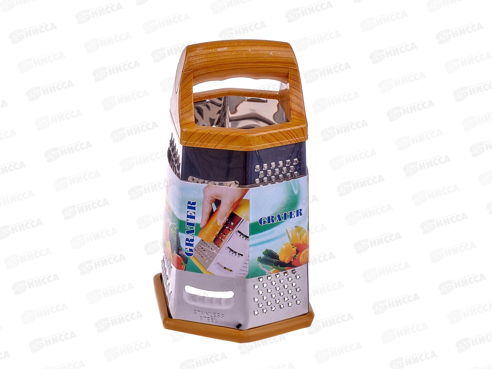 Характеристики: Артикул: 29437 Тип товара: Терка Количество поверхностей: 6-и сторонняя Высота: около 21 см Конструкция: с пластиковой ручкой, с рамкой Материал: нержавеющая сталь