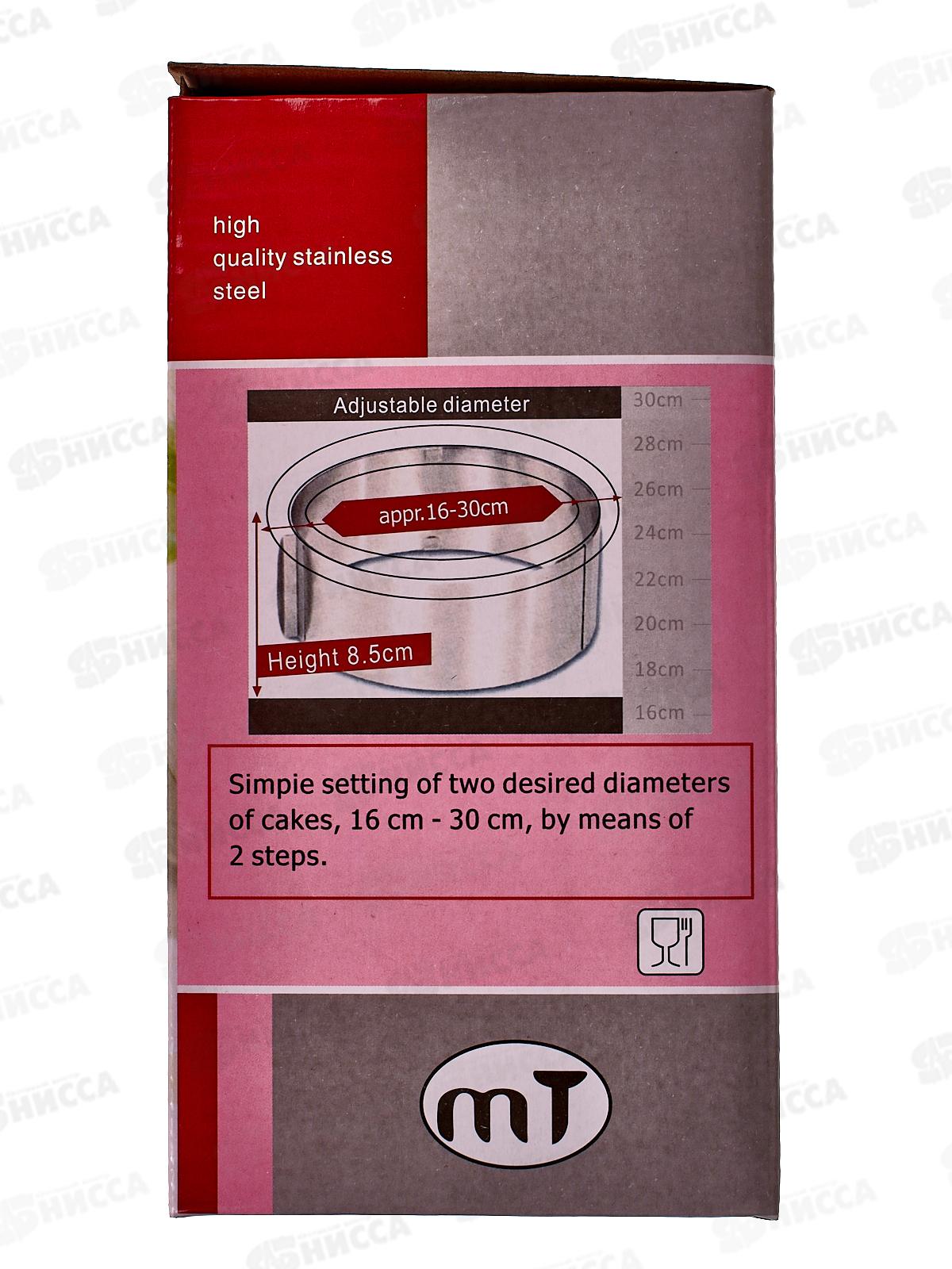 Характеристики: Торговая марка: TAS-PROM Артикул: 61181 Тип товара: Форма для выпечки Назначение: для торта Особенность: регулируемая Диаметр: 16-30 см Высота: 8,5 см Мытье в ПММ: да