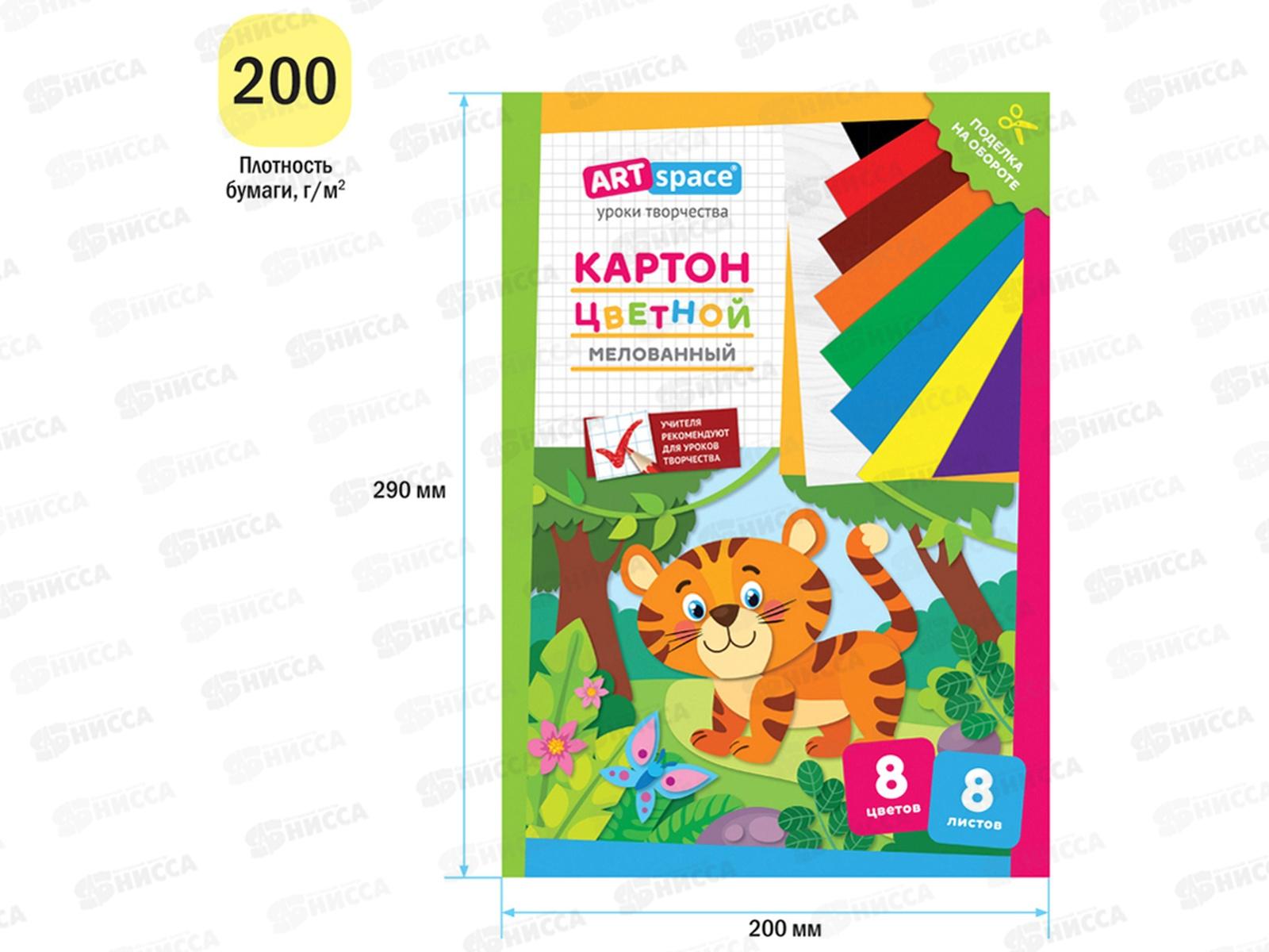 Цветной картон ArtSpace А4 8л 8цв Тигренок клей, 28657 *25