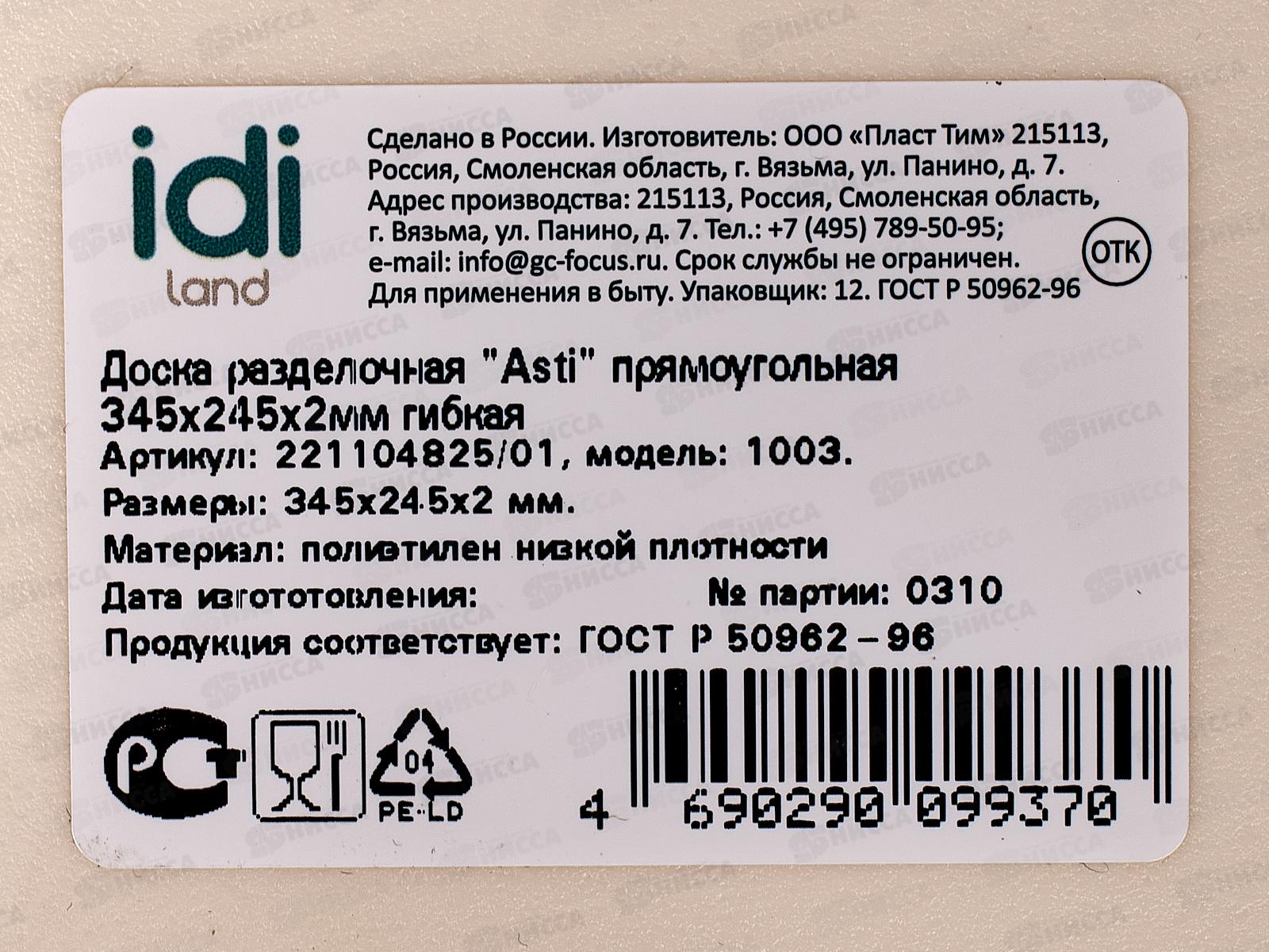 Доска разделочная "Asti" 345*245*2мм гибкая 221104825/01 *30