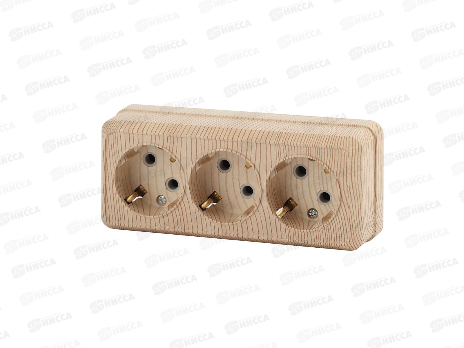 Розетка INTRO Quadro открытой установки с заземлением трехместная, 16А-250В, IP20, сосна, 2-206-11