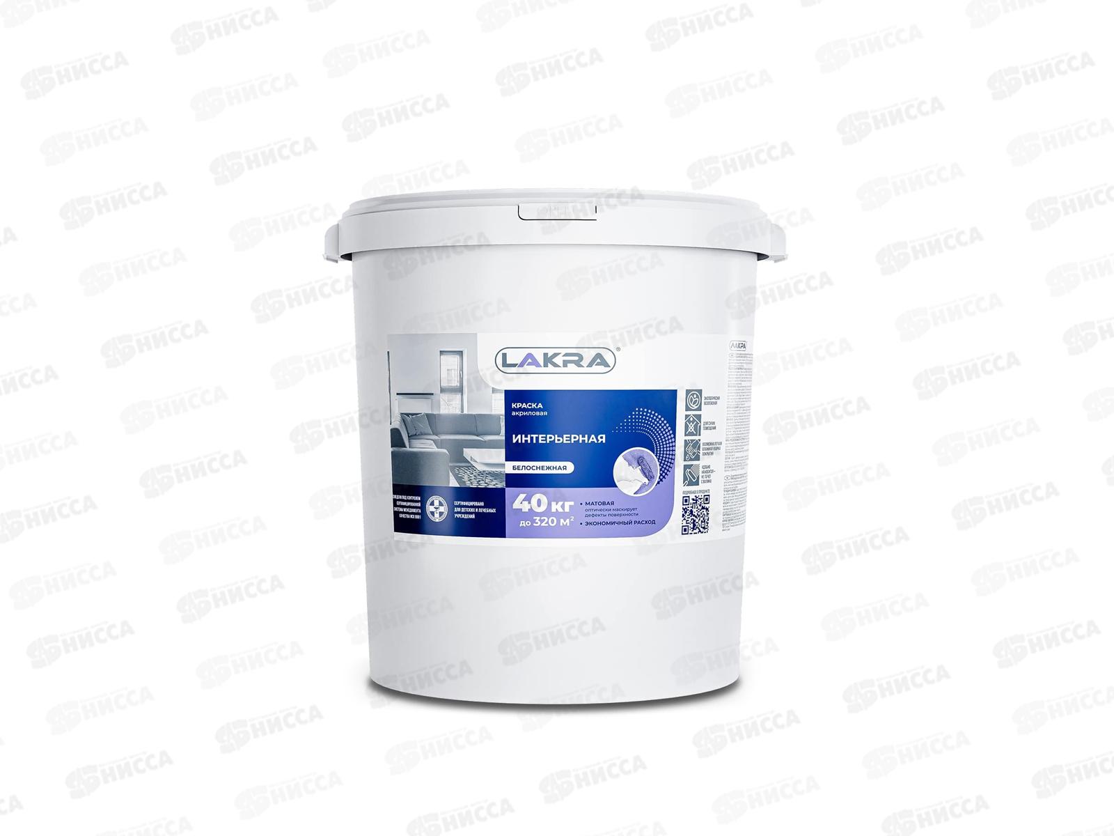 Краска интерьерная 40кг акриловая Лакра белоснежная, 8306524