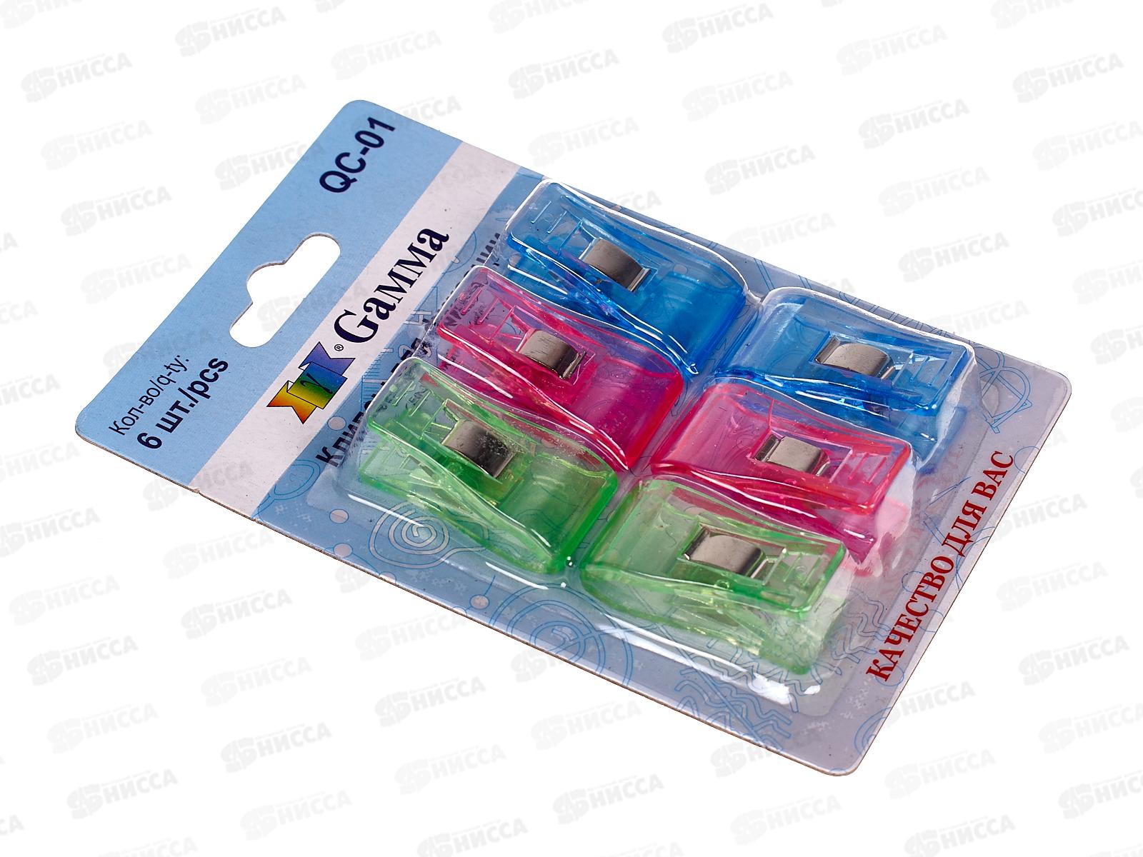 Клипсы для фиксации "Gamma" QC-01 3,3см 6шт сталь пластик в блистере