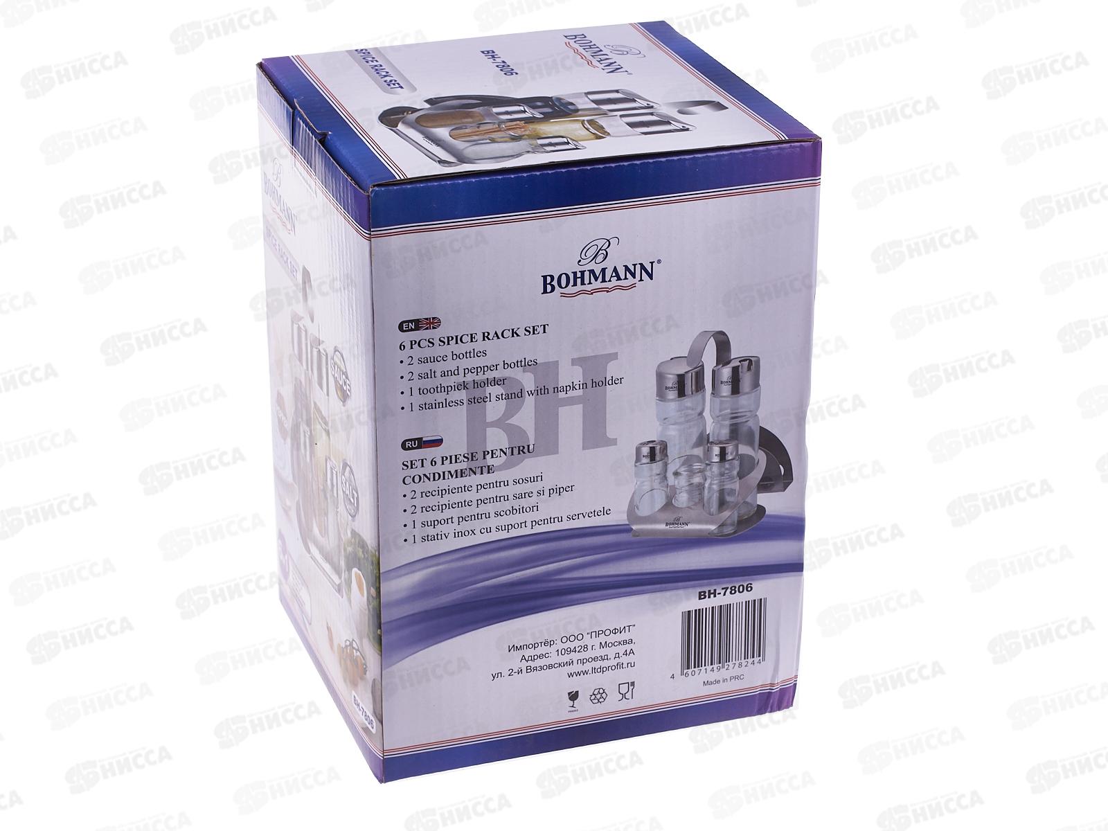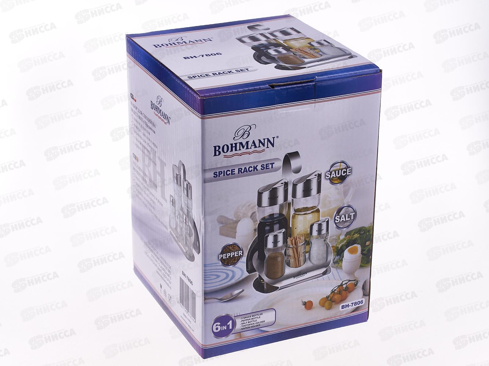 Набор для специй Bohmann BH 7806 состоит из шести предметов. Такой набор станет прекрасным подарком для любой хозяйки. Благодаря своей цветовой гамме, набор найдет место в любом интерьере кухни. Предназначен для хранения соли и перца, но вы можете хранить в нем любые специи, соусы на ваше усмотрение, и есть емкость для зубочисток. Удобен в использовании, легко моется и чистится под проточной водой. Комплектация: емкость для соли, емкость для перца, емкости для соуса (2 шт), емкость для зубочисток.