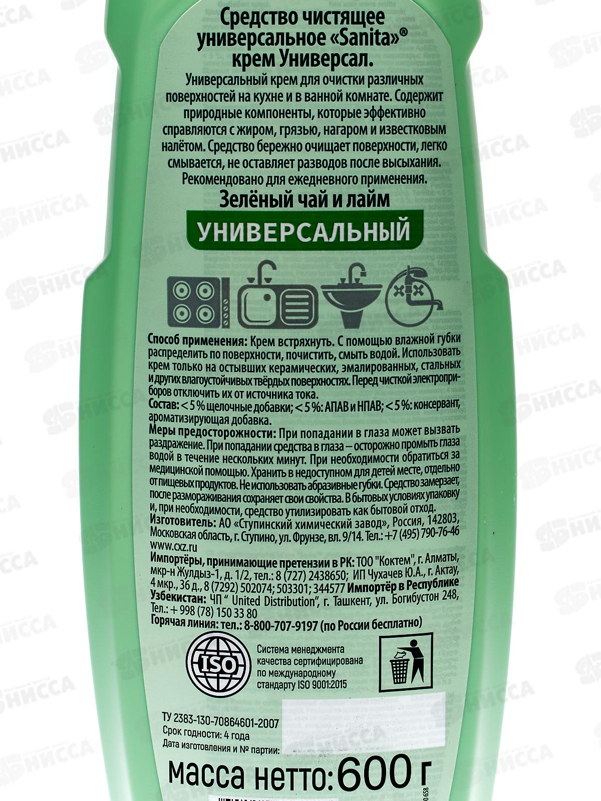 САНИТА-КРЕМ Универсальный 600мл Зеленый чай/лайм *12 2022