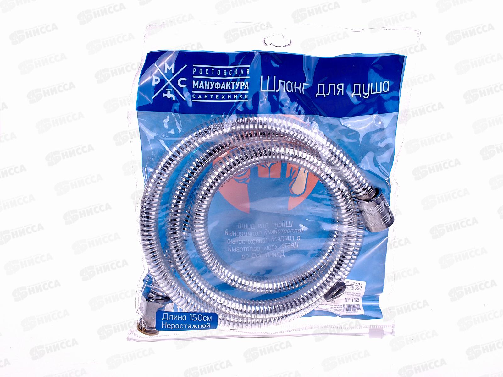 Шланг для душа 150см нерастяжной, хромированные латунные фитинги 1/2, рабочее давление 8 бар, максимальная температура 70 градусов, используется для соединения смесителя с душевой лейкой.