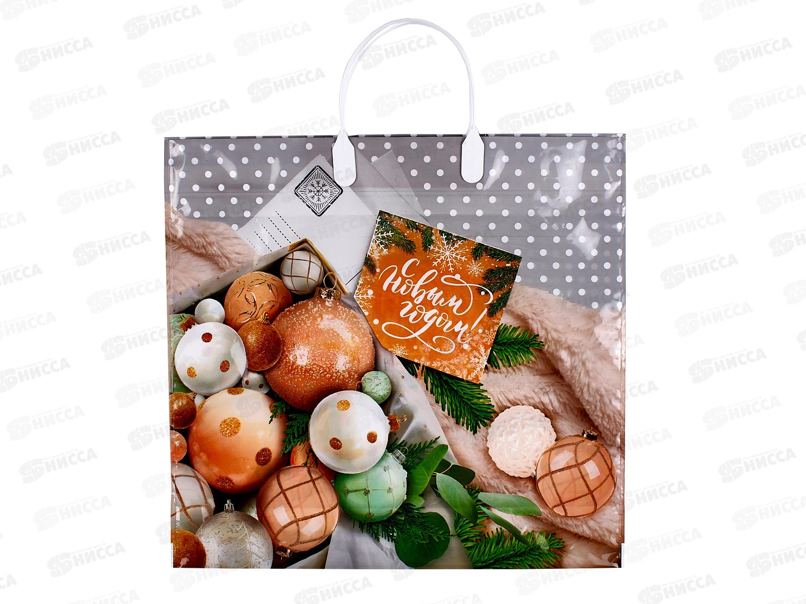 Пакет с пластиковой ручкой Новый Год 38*35 Злато *10/100