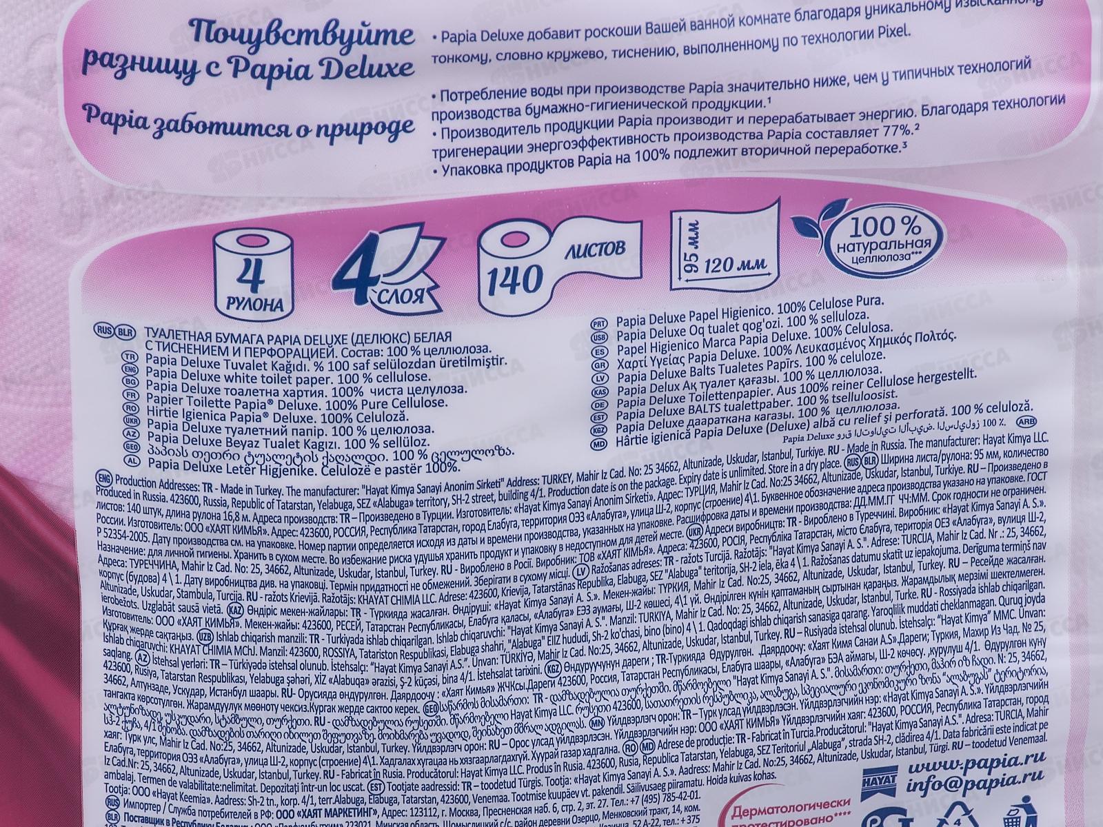 Бумага туалетная Papia DELUXE 4-х слойная 4шт *14