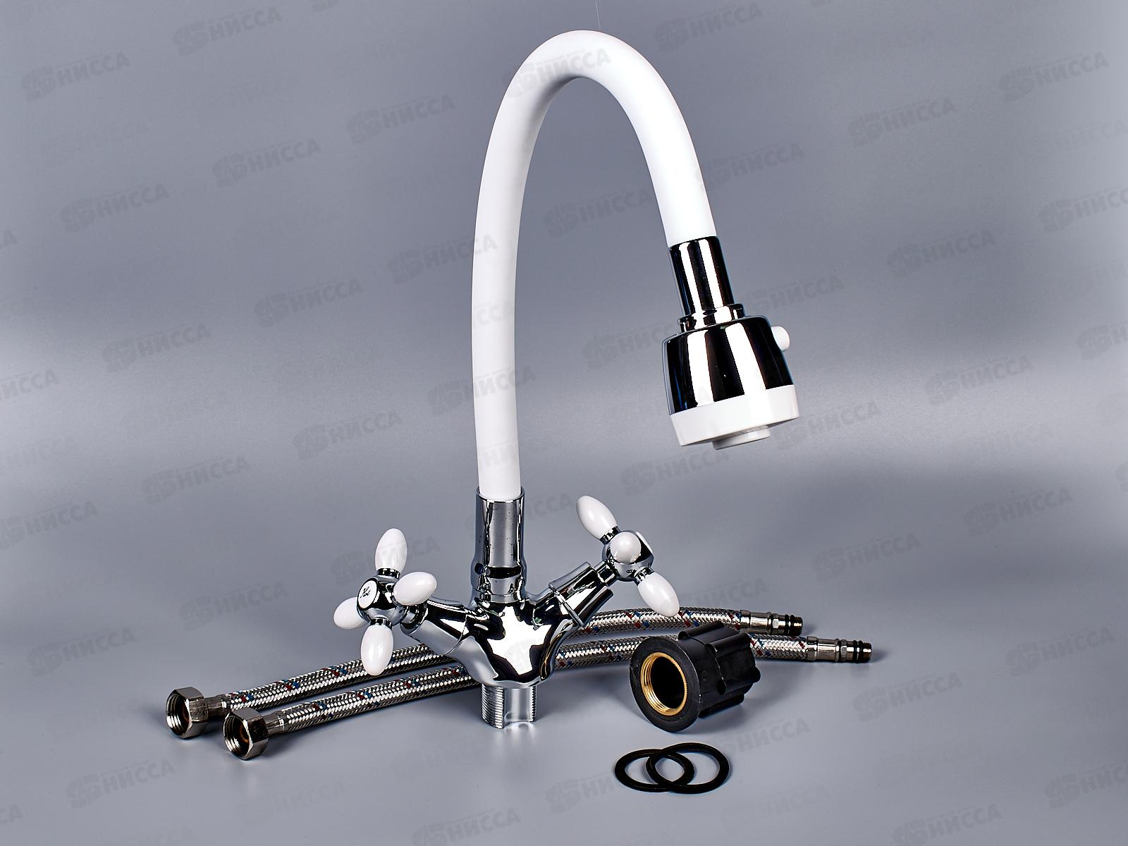 Смеситель для кухни ЭВЕРЕСТ В57-071А, белый, гибкий