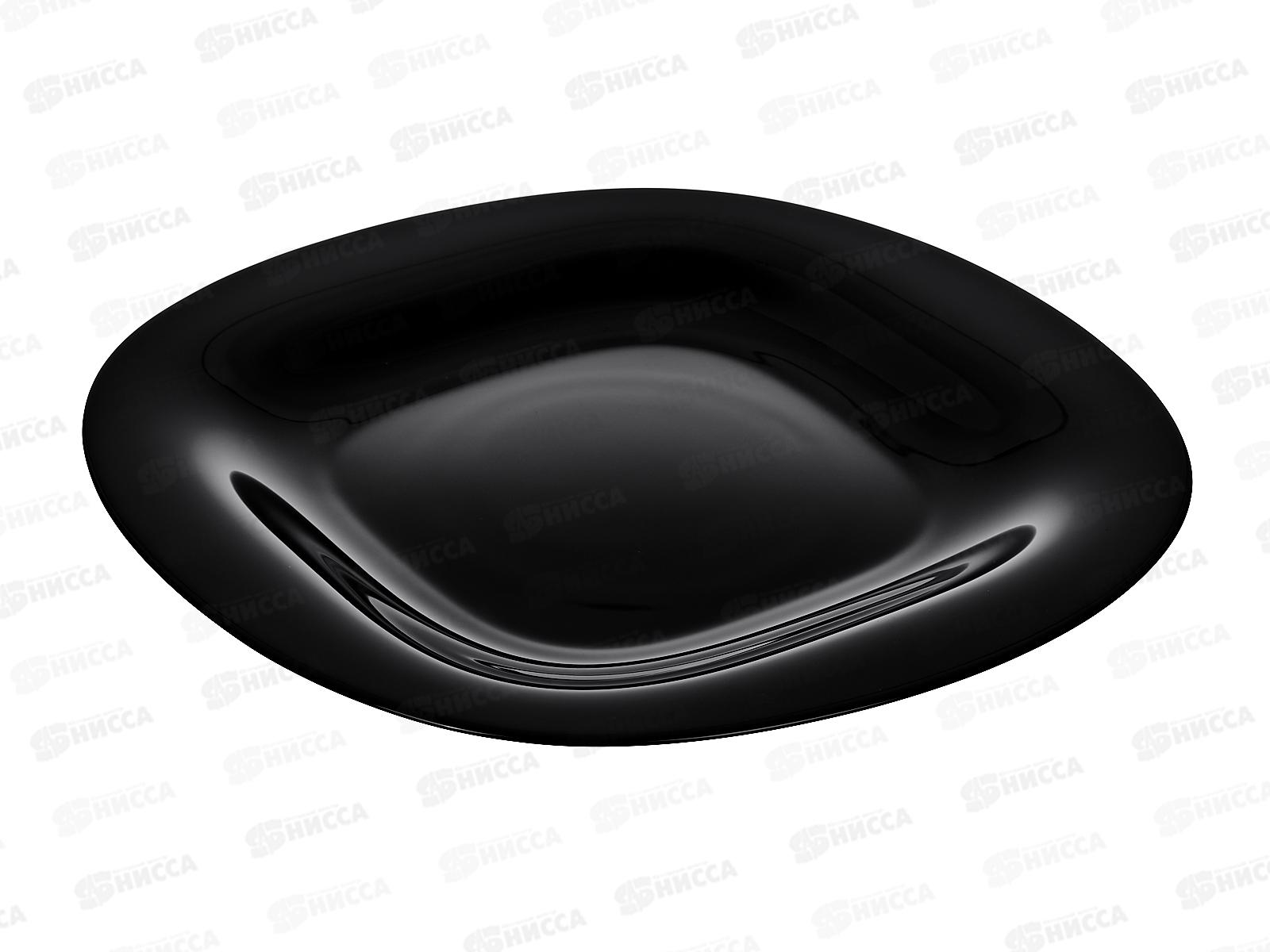 Тарелка обеденная квадратная Luminarc "Carine Black". Диаметр тарелки - 27 см. Материал - ударопрочное, закаленное стекло, способное выдерживать резкие перепады температуры. Тарелка не нуждается в особо бережном уходе, её можно мыть в посудомоечной машине и использовать в СВЧ.