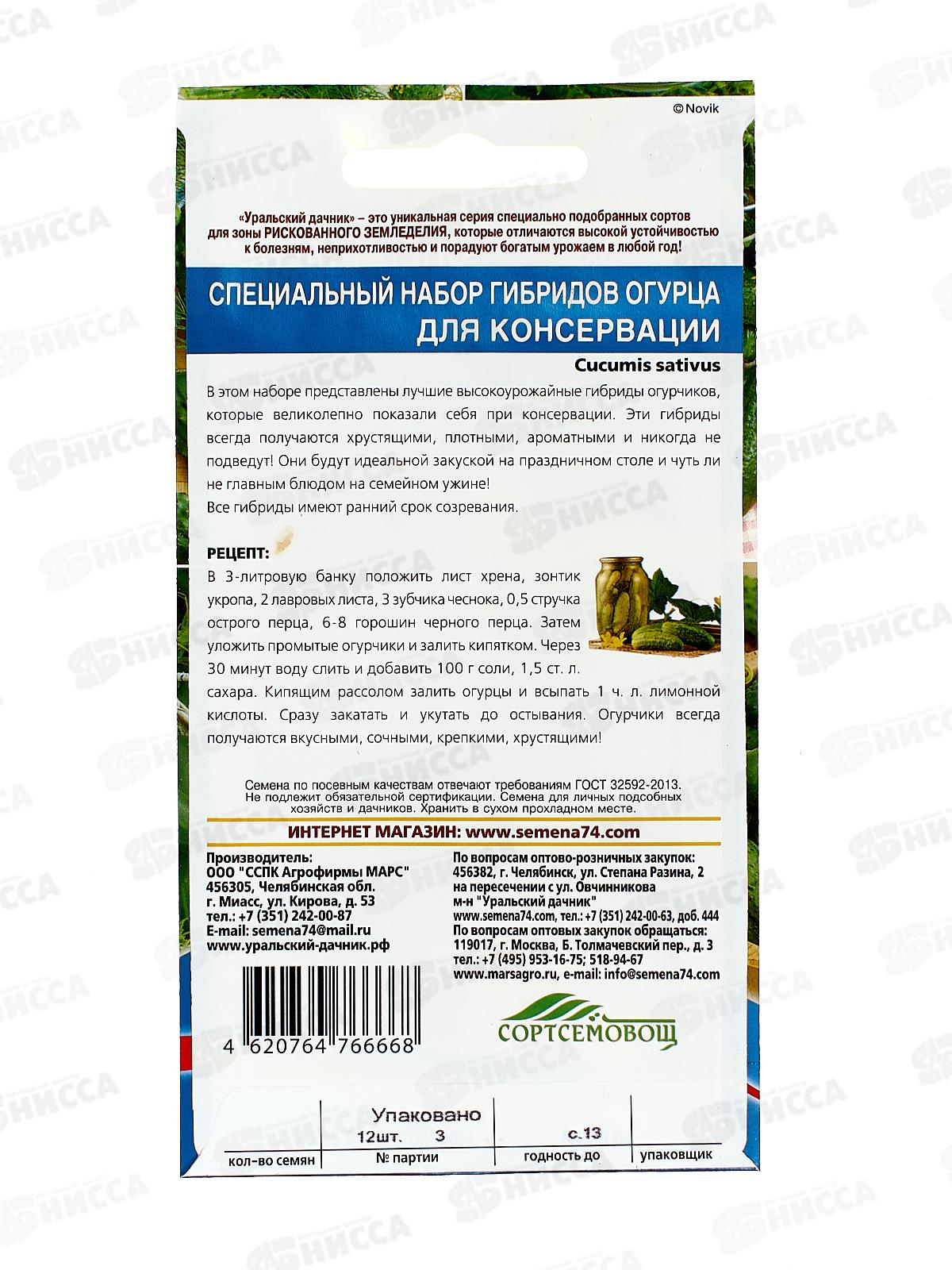 Огурец Набор гибридов для Консервации Евро *10 УрД