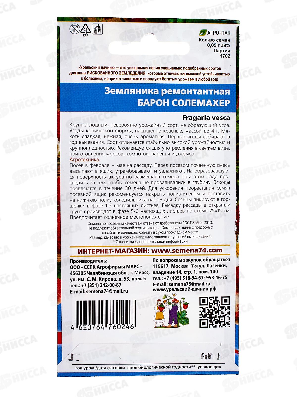 Земляника Барон Солемахер-ремонтантная Евро *10 УрД +