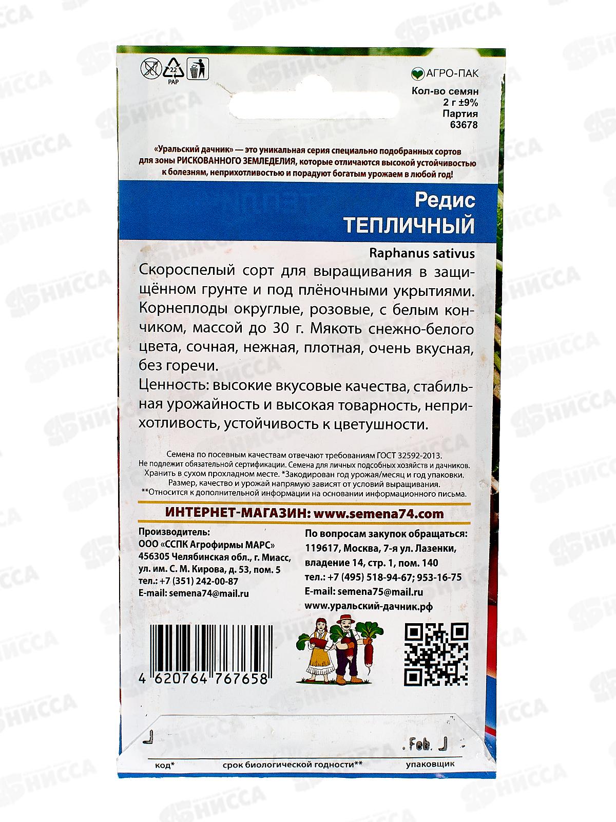 Скороспелый сорт для выращивания в защищённом грунте и под плёночными укрытиями. Корнеплоды округлые, розовые, с белым кончиком, массой до 30 г. Мякоть снежно-белого цвета, сочная, нежная, плотная, очень вкусная, без горечи. Ценность: высокие вкусовые качества, стабильная урожайность и высокая товарность, неприхотливость, устойчивость к цветушности.