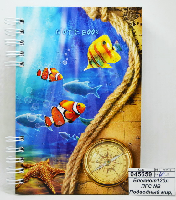 Блокнот120листов ПГС NB Подводный мир, 100*150, лакированный., на гребне. *6