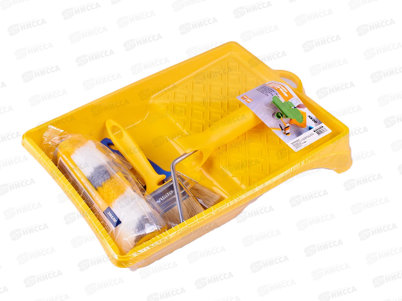 Состав набора: валик "Эксперт", тигр, 180 мм; ванночка средняя 33х26 см; кисть: "Эксперт" КФ 25х8 мм, "Евро" КФ 35х8 см, "Эксперт" 50х12 см.