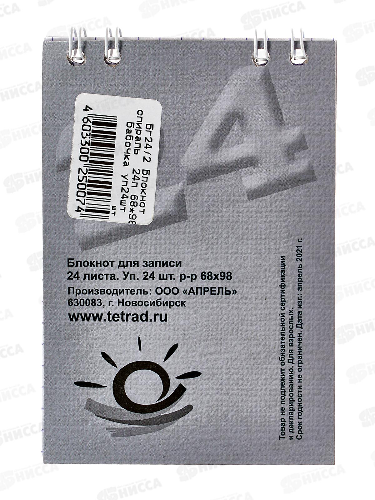Блокнот 24листа ПГС Бабочка, 68*98, глиттер.,на гребне. *24