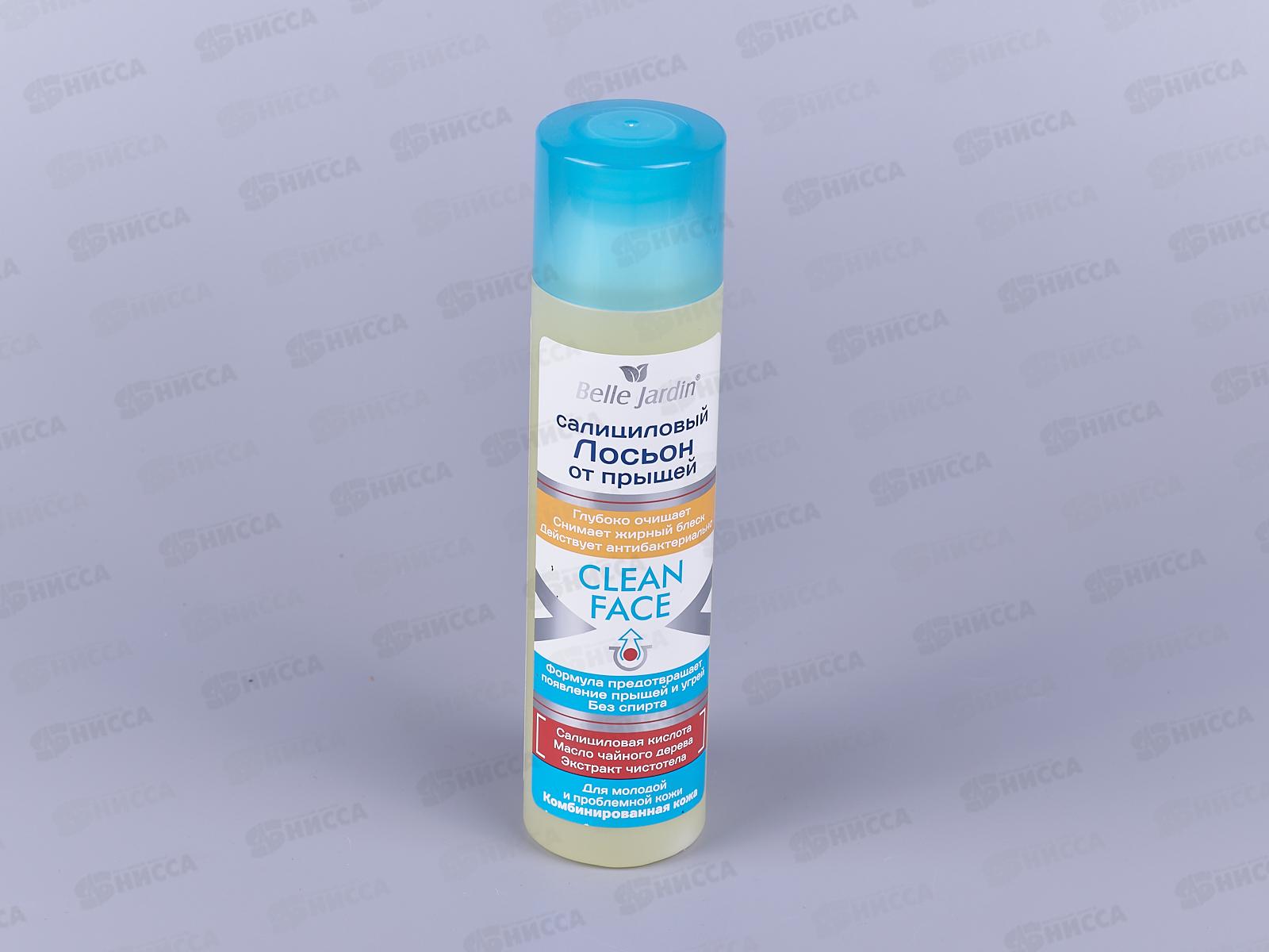 Салициловый лосьон для лица Belle Jardin Clean Face поможет в борьбе с прыщами. Косметический продукт глубоко очищает и разглаживает кожу лица. Действует антибактериально. Матирует и ухаживает за нежной дермой лица. В составе средства содержится экстракт чистотела. Идеально подходит для молодой, проблемной и комбинированной кожи. Состав: вода, полисорбат-20, тридецет-9 (и) гидрогенезированное касторовое масло ПЭГ-40, глицерет-18, этилгексаноат (и) глицерет-18, пропиленгликоль, салициловая кислота, экстракт чистотела большого, экстракт корня солодки, масло чайного дерева, бензоат натрия, отдушка.