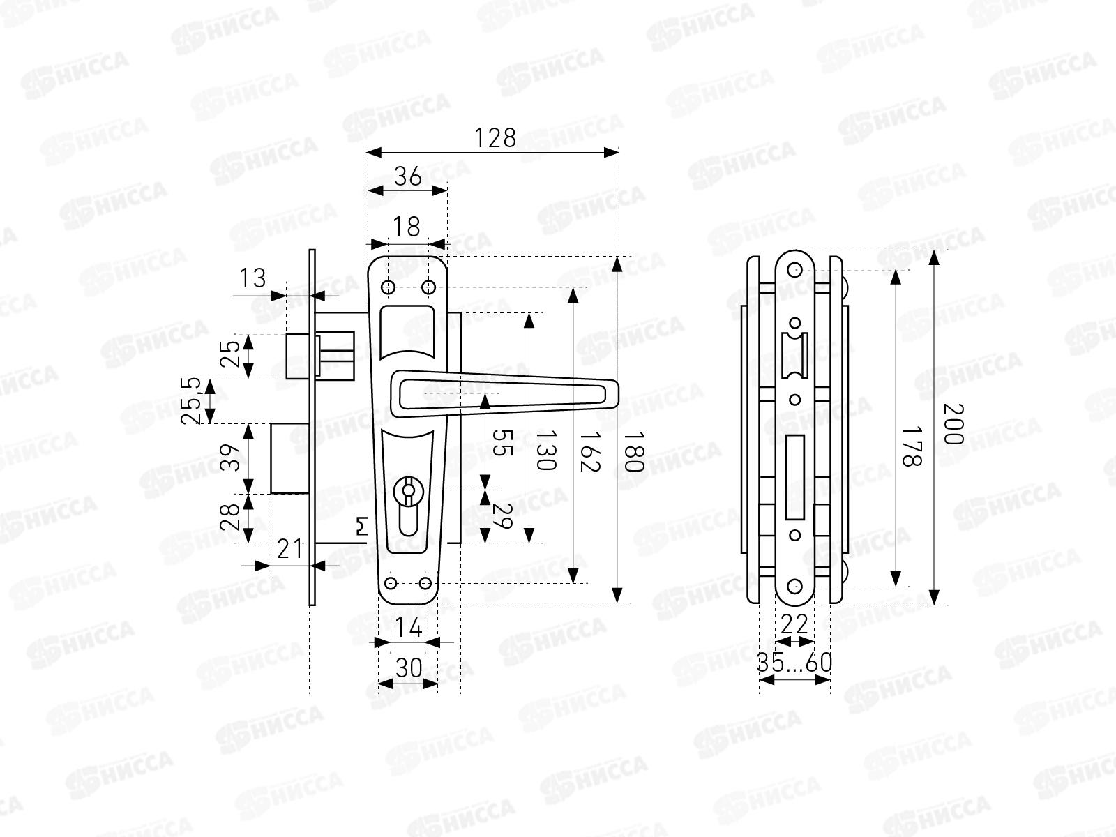 Замок врезной Птимаш ЗВ4-3.01 серебро *10 776