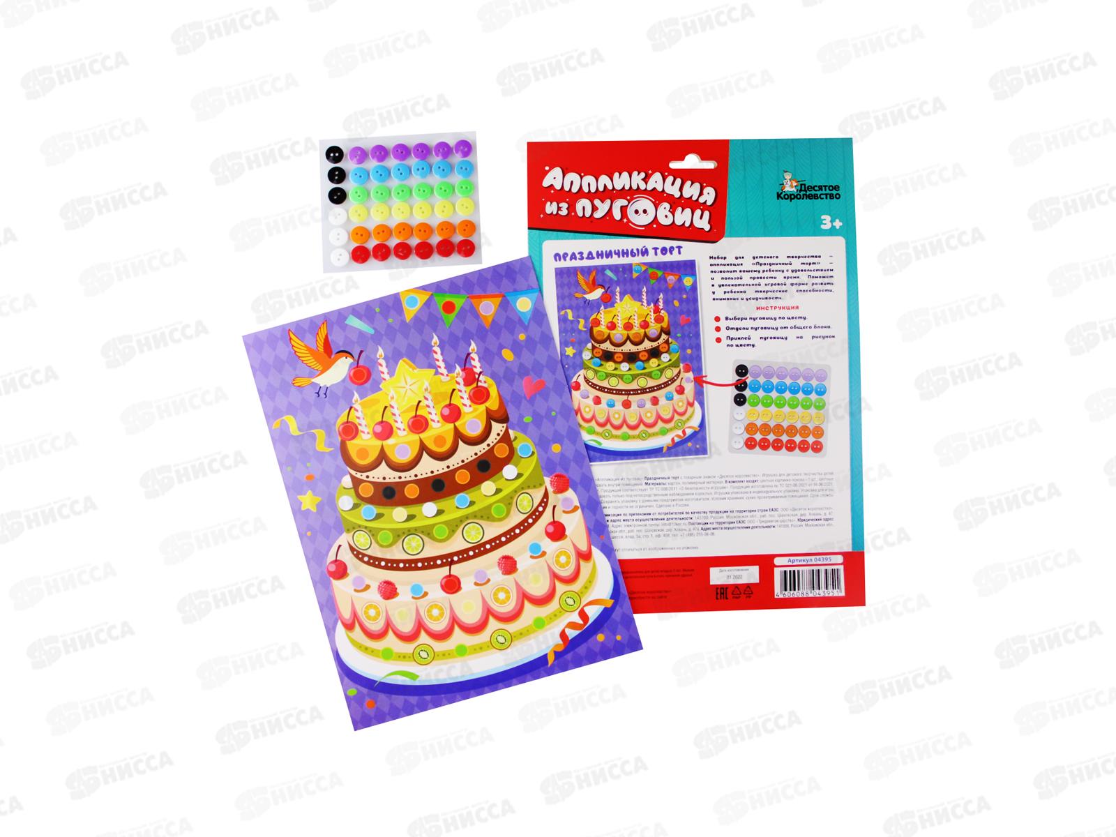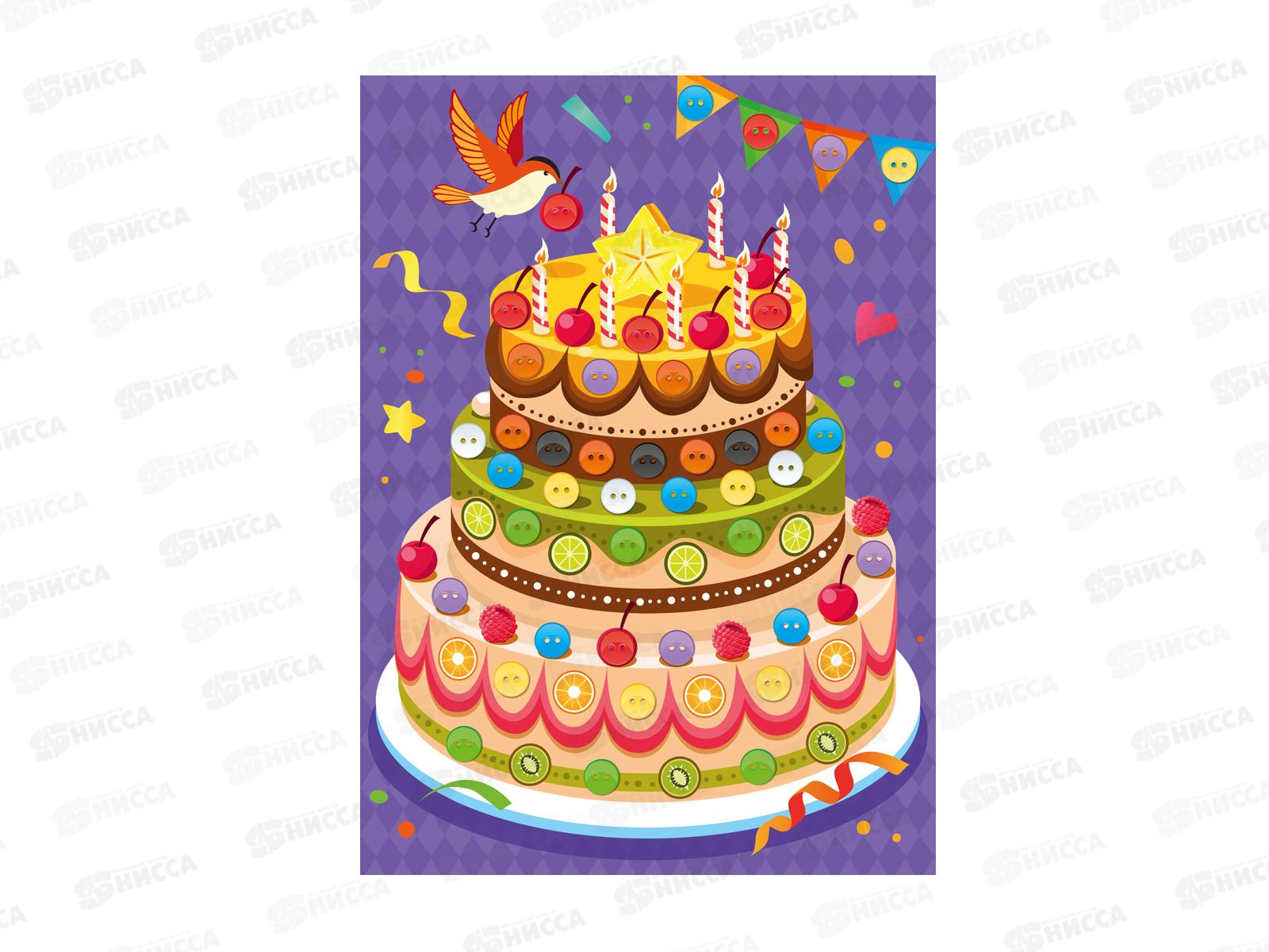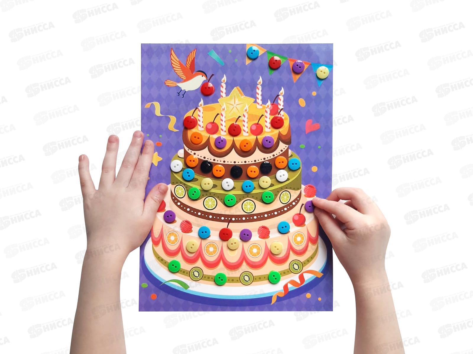Аппликация из пуговиц "Праздничный торт" 04395 *20