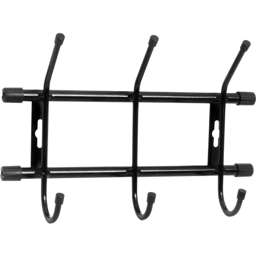 Вешалка (3 крючка) для размещения верхней одежды и головных уборов. Материал: каркас - стальная труба с порошковым покрытием, наконечники - пластмассовые. Покрытие вешалки устойчиво к механическим воздействиям. Допустимая нагрузка на крючок до 5 кг.