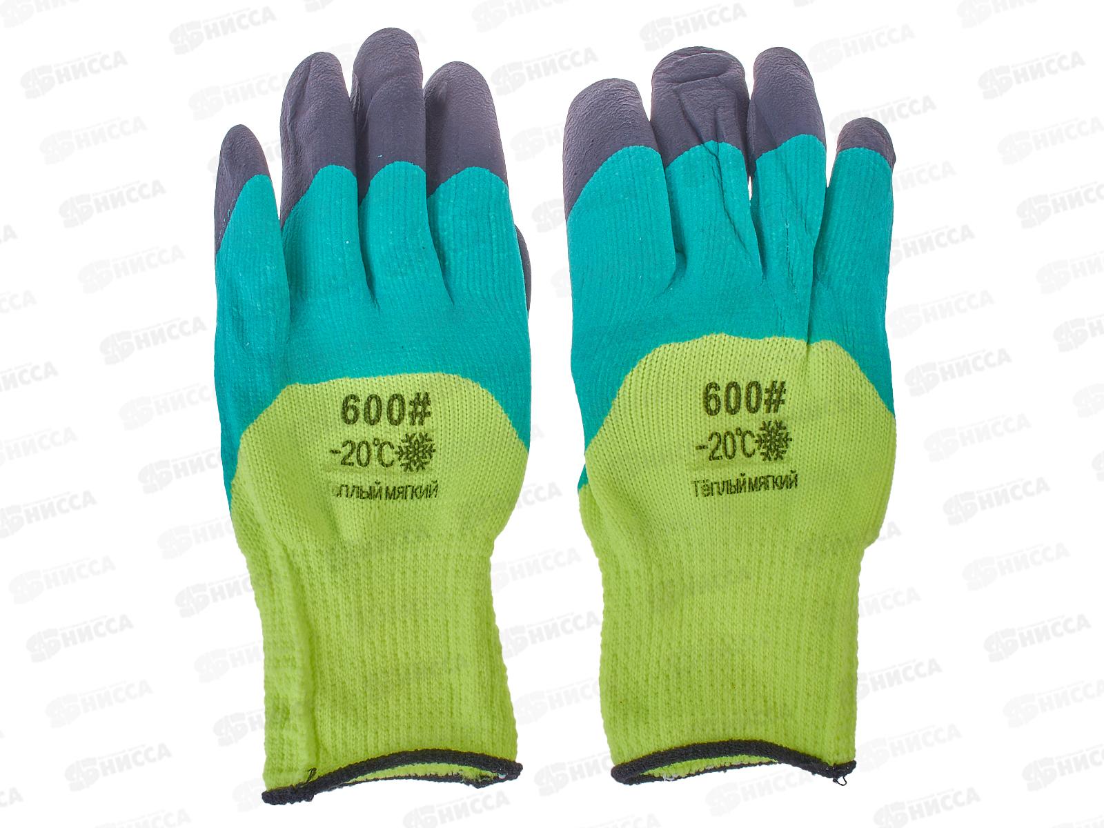 Перчатки хлопчатобумажные облитые синие/зеленые вспененные наладонником Зима №147 *10/480