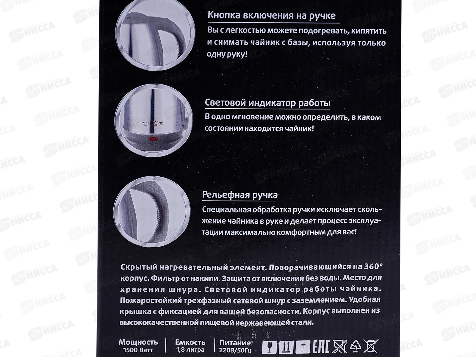 Электрический чайник отключится при закипании и при этом выключится световой индикатор работы. Подставка позволит повернуть чайник под руку на 360 градусов. Корпус электрочайника выполнен из сочетания нержавеющей стали и пластика, что делает его устойчивым к любым внешним воздействиям. Прибор оснащён системой многоуровневой безопасности - автоотключение при закипании, защита от включения без воды. Световой индикатор работы просигнализирует о работе чайника. Чайник имеет фильтр от накипи.