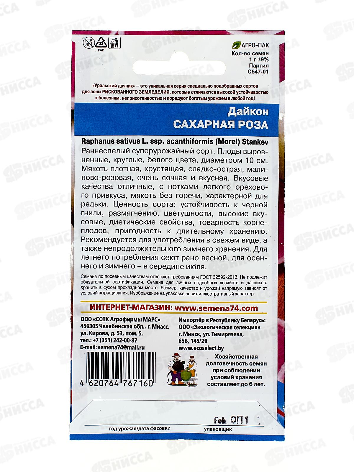 Дайкон САХАРНАЯ РОЗА — Сорт – сюрприз! Мякоть розовая, очень нежная, сочная, без горечи! Истинное украшение любого стола! Корнеплоды выровненные, круглые, белого цвета, диаметром 10 см. Мякоть розовая, очень нежная, сочная, без горечи. Отлично хранится. Холодостойкий.