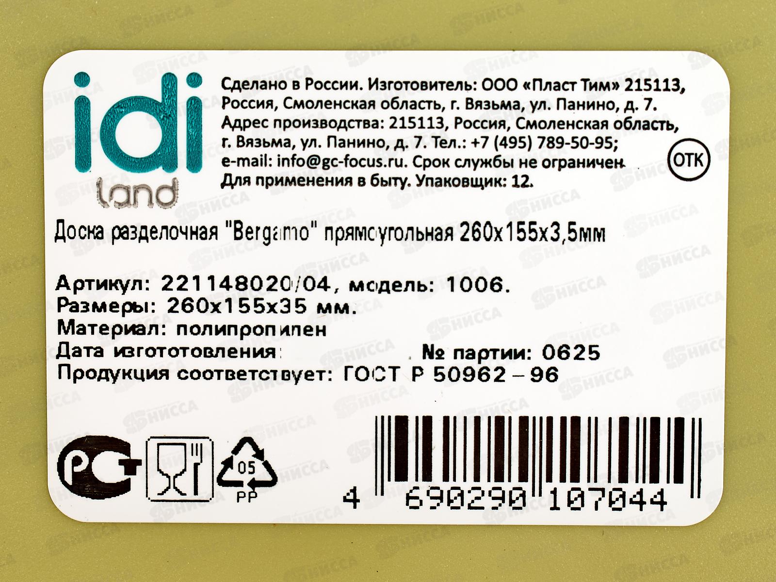 Доска разделочная Bergamo малая 26x15,5 см делает процесс приготовления еды быстрее и приятнее. Стильный IML декор на лицевой стороне доски вплавляется в изделие на этапе литья, поэтому он долго будет поднимать настроение во время готовки, а также поможет различать рабочие стороны доски. Материал досок отличается не только гигиеничностью и высокой стойкостью к мытью и впитыванию запахов, но и сохраняет ножи острыми, в том числе керамические. На матовой поверхности доски не видны следы от ножа. По краям доски идет небольшой бортик, не позволяющий соку и жидкости вытекать с доски на рабочую поверхность. Имеет удобную ручку для переноски и хранения на крючке. Доска изготовлена из безопасного на 100% перерабатываемого полипропилена, не содержит бисфенола А. Высококачественный материал не боится перепадов температур.