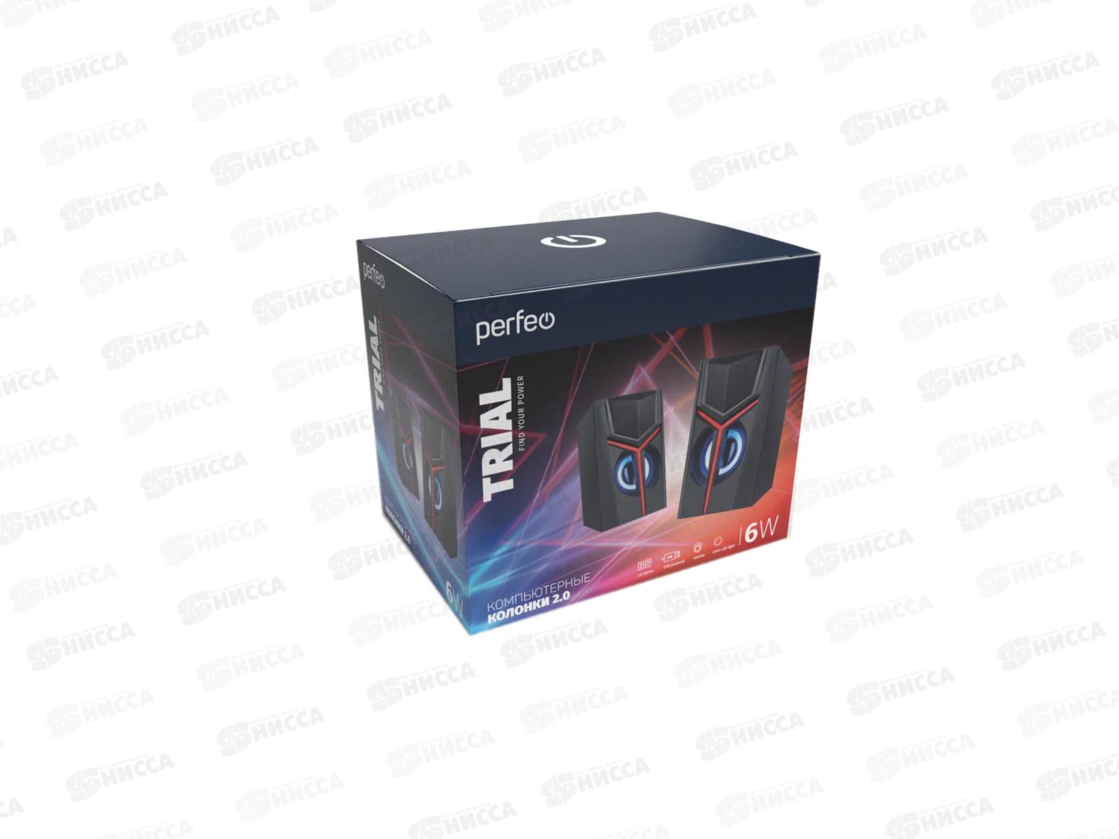 Колонки Perfeo 2.0 TRIAL, 2*3Вт, USB, черный, Game Design, LED подсветка 7 цветов, PF_B3374