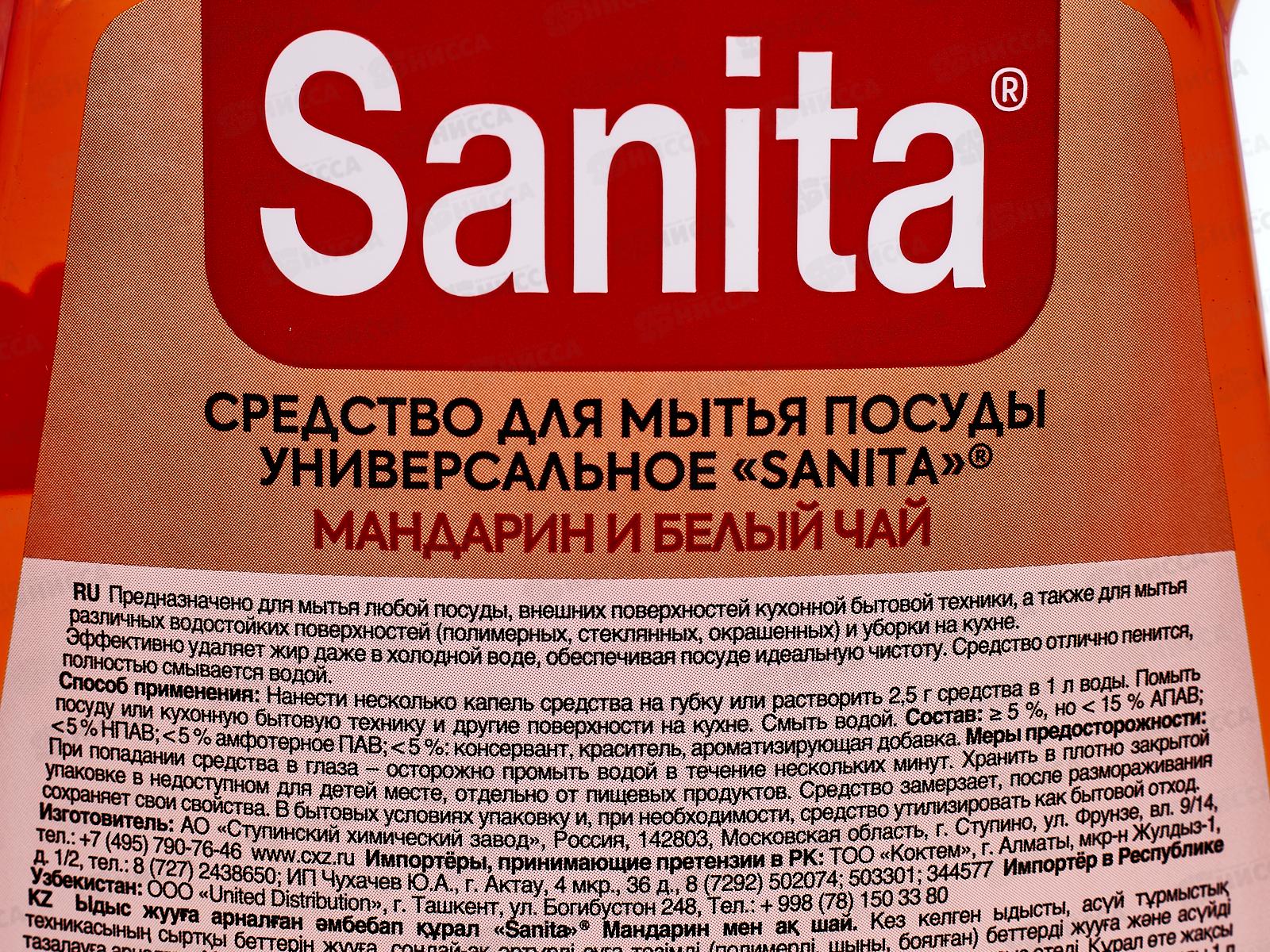 САНИТА гель для посуды Мандарин и белый чай 900г *8