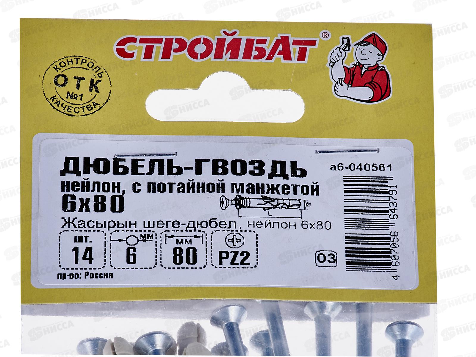 Дюбель-гвоздь нейлон потайной манжет 6x80мм (14 шт), 040561
