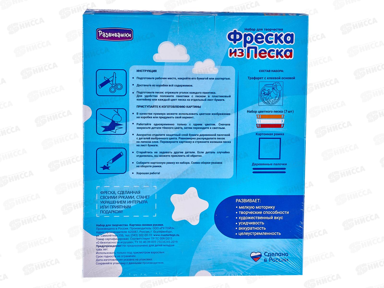 Комплектация: трафарет с клеевой основой, палочка, цветной песок, рамка