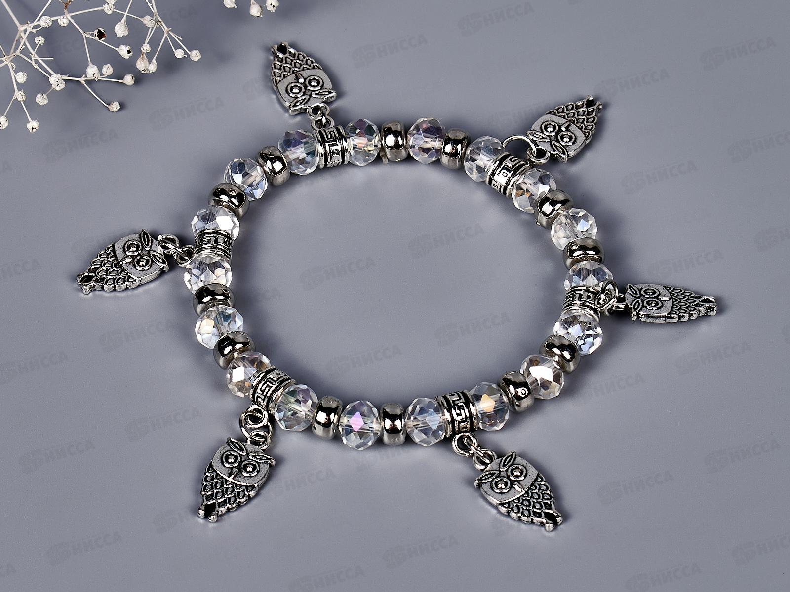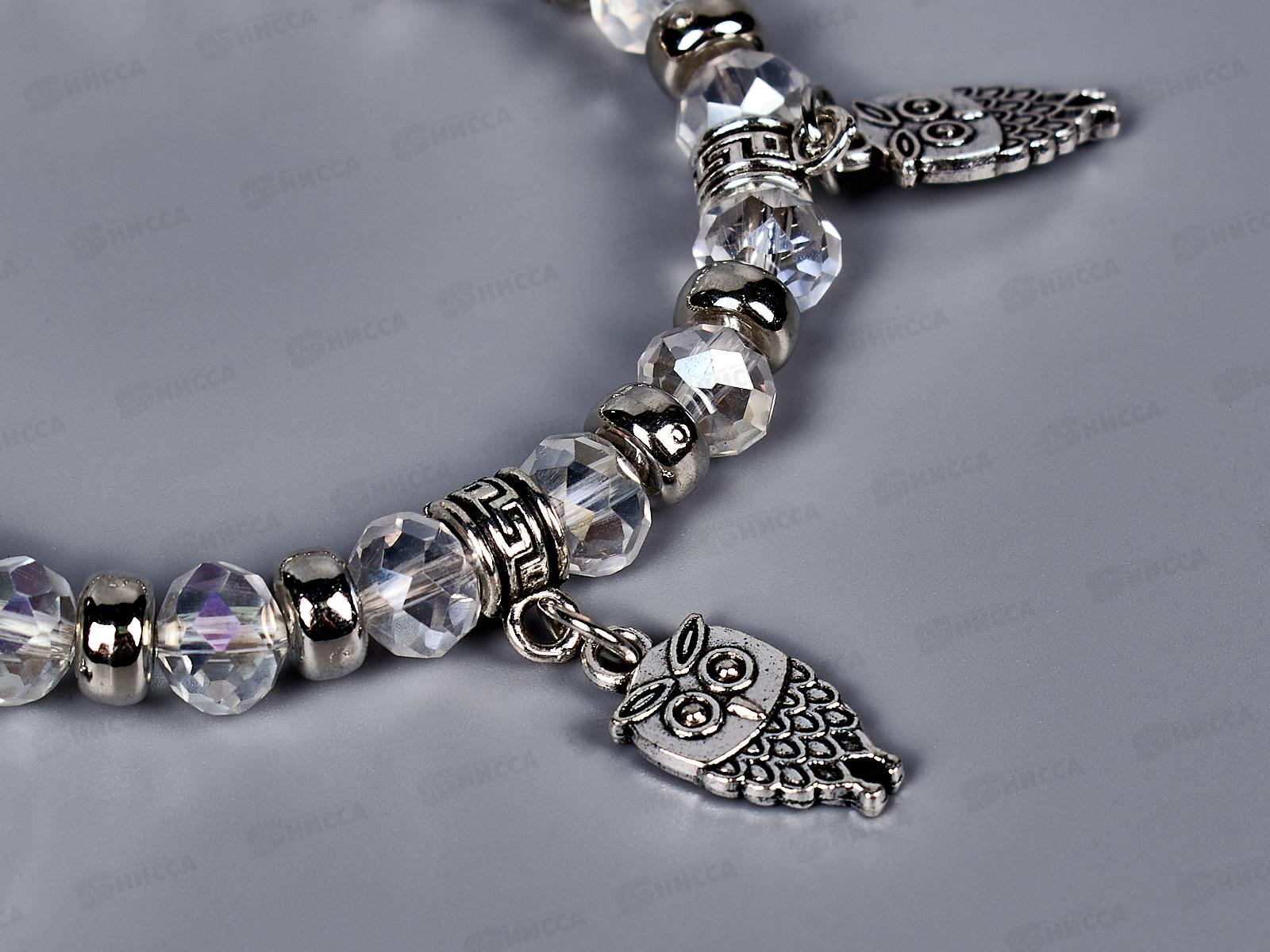 Браслет-резинка "Горный хрусталь" с кулоном Сова №72