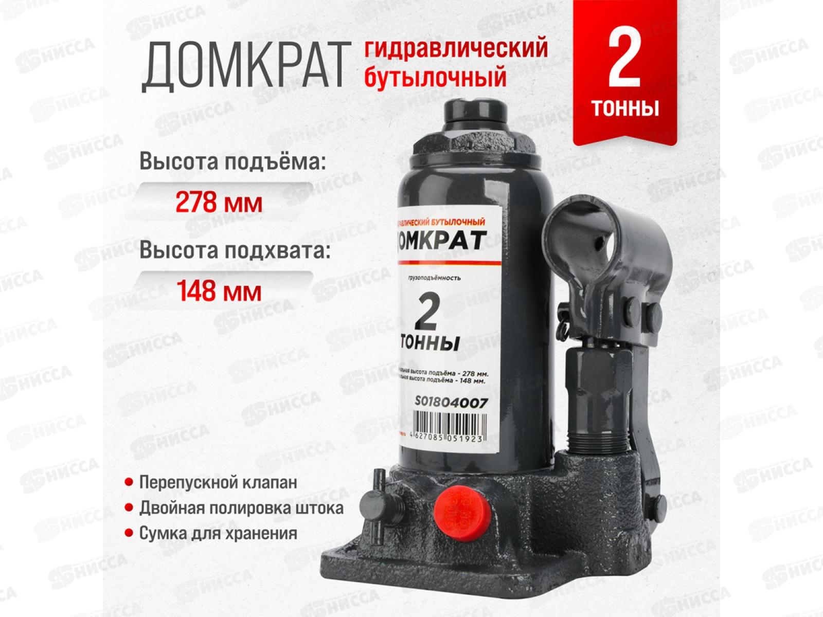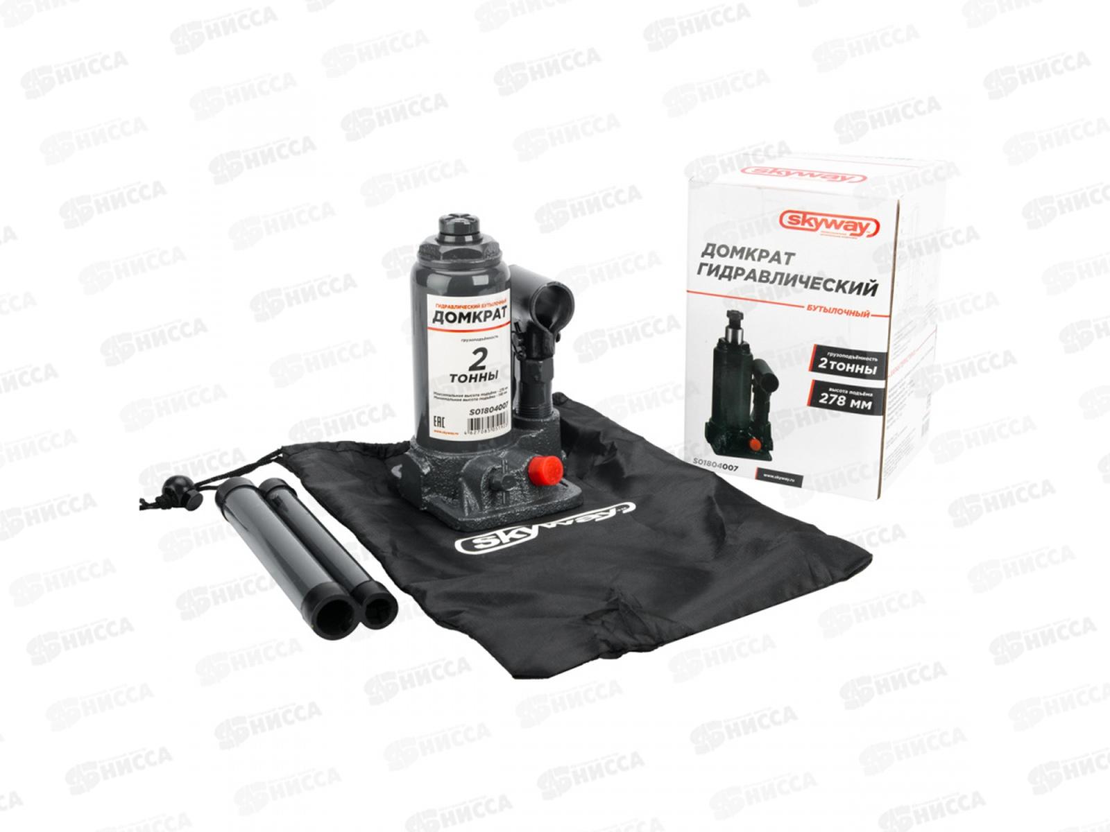 Домкрат гидравлический бутылочный SKYWAY с клапаном в кейсе 2т h 148-278мм