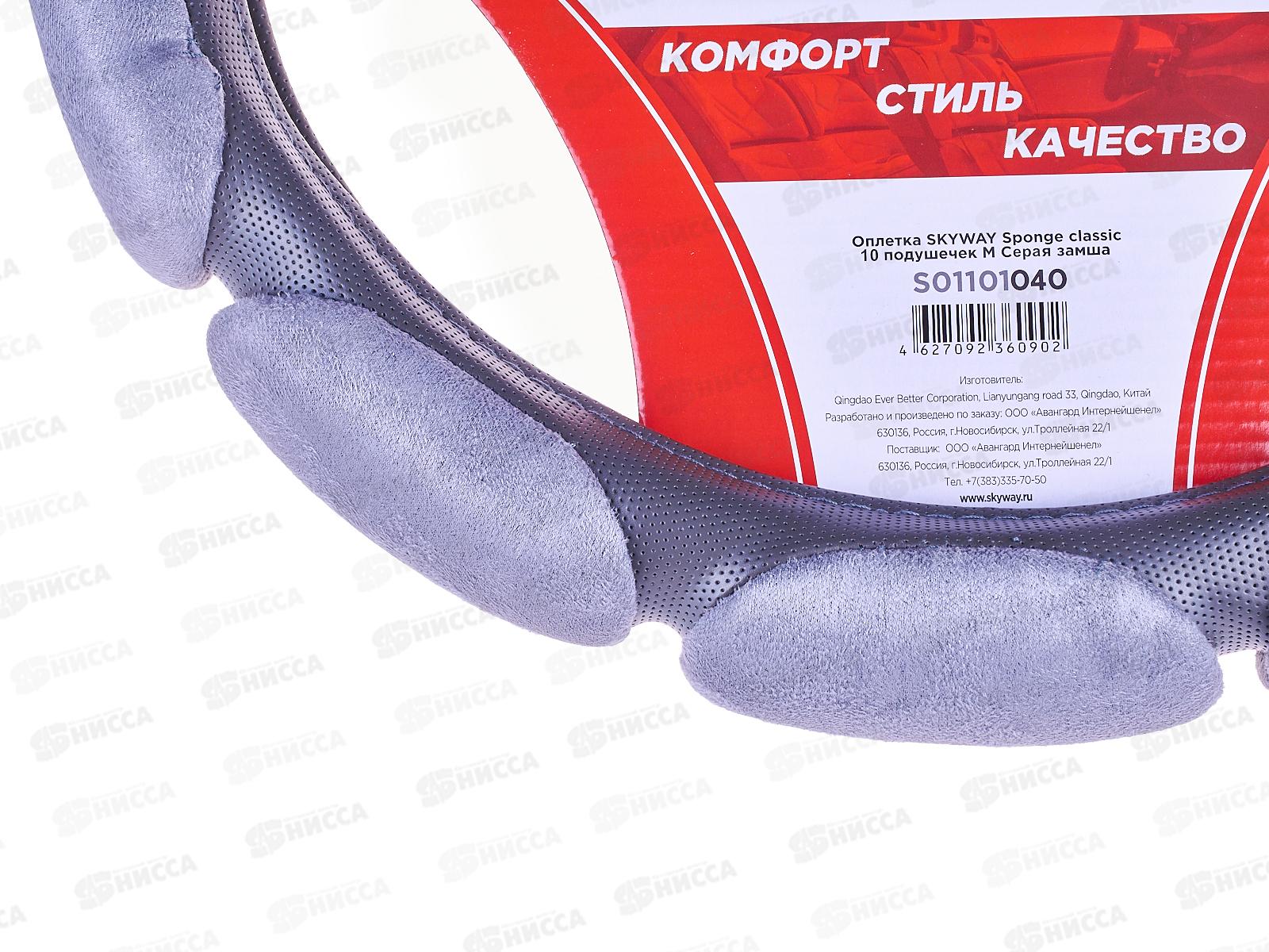 Оплетка SKYWAY Sponge classic - мягкая оплётка идеально принимает форму рулевого колеса, исключая скольжение рук при вождении. Скроет имеющиеся царапины, потёртости, убережёт руль от грязи, возможных повреждений. Оплётка выполнена из искусственной замши, что гарантирует комфорт рукам даже при длительном вождении. Не нагревается летом от солнечных лучей, остаётся приятной на ощупь в холодное время года. Выполнена в классическом стиле с 10 "подушечками". Вставки из спонжа прекрасно сохраняют "память" об изменении формы, послушно принимают форму рук, не оказывая обратного пружинящего воздействия. Оплётка украсит салон, выгодно подчеркнув вкус и индивидуальность автовладельца. Сделает вождение комфортным и безопасным.