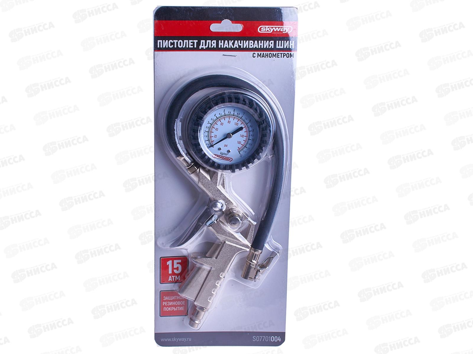 Пистолет для накачивания шин SKYWAY с манометром 12 АТМ быстросъемное соединение, S07701004